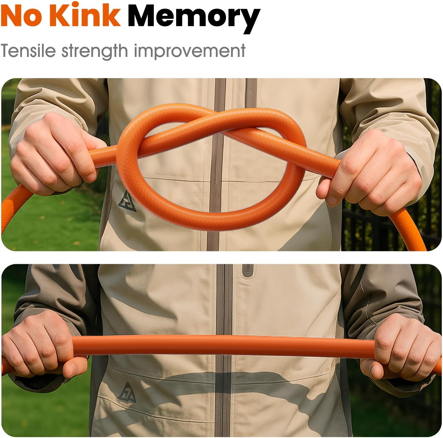 - ANTI-KINK TECHNOLOGY: The fantastic flexible material allows the water hose to uncoil and lay flat as soon as it is used, and it snaps back into shape to fight kinks as you drag it across the lawn. It also features an industrial technology upgraded 360-degree swivel fitting, providing you with an enhanced experience of kink resistance