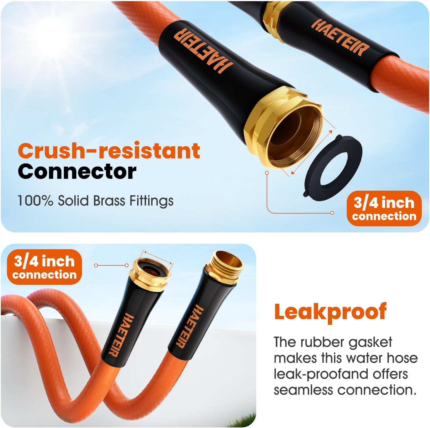 - ID 5/8 efficiency increased by 20%: This 5/8 large inner diameter gardening hose provides higher water flow, allowing you to complete watering, car washing, yard cleaning, and other watering tasks more efficiently and easily. (connection size 3/4 inch, hose inner diameter 5/8 inch)