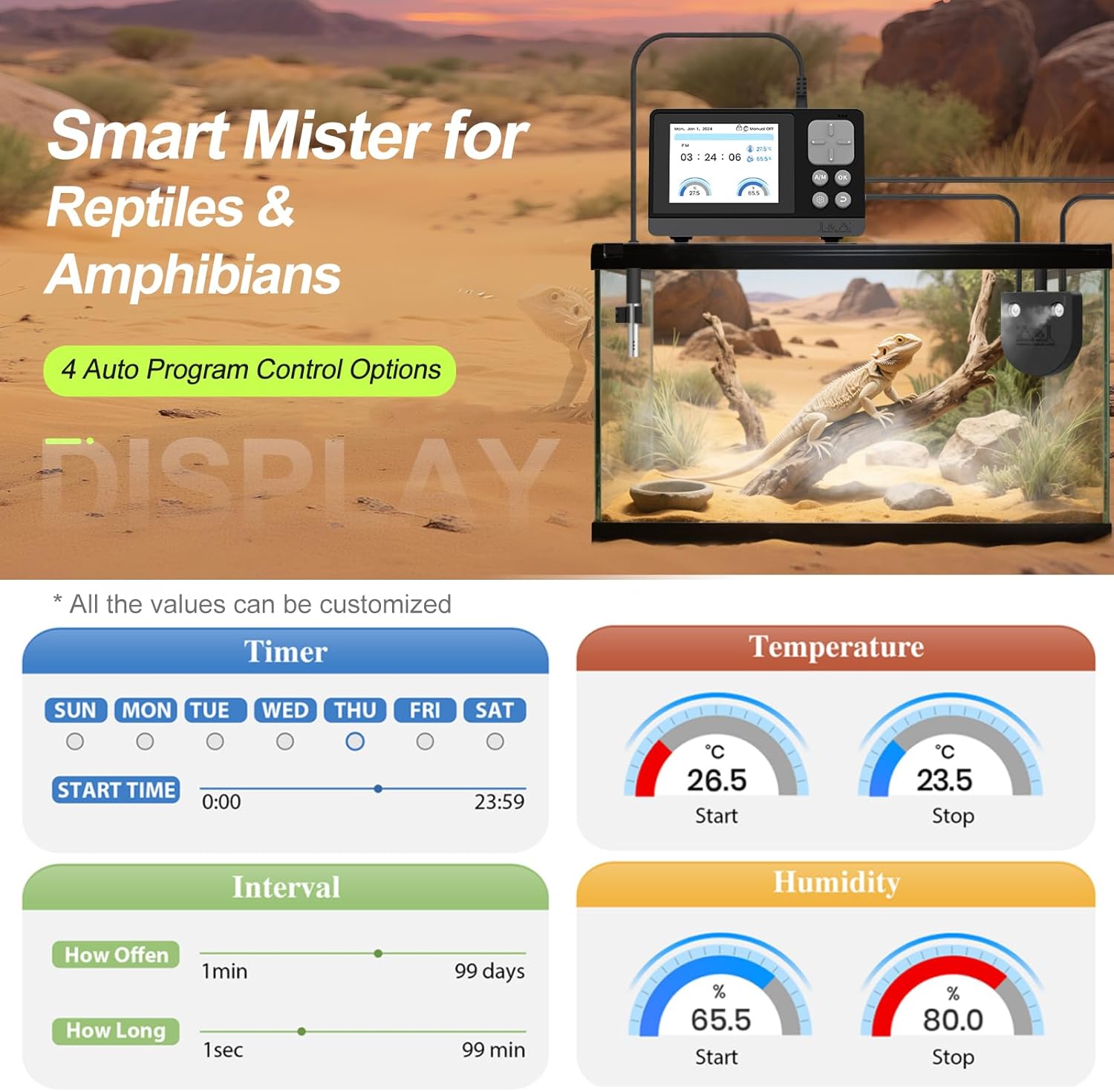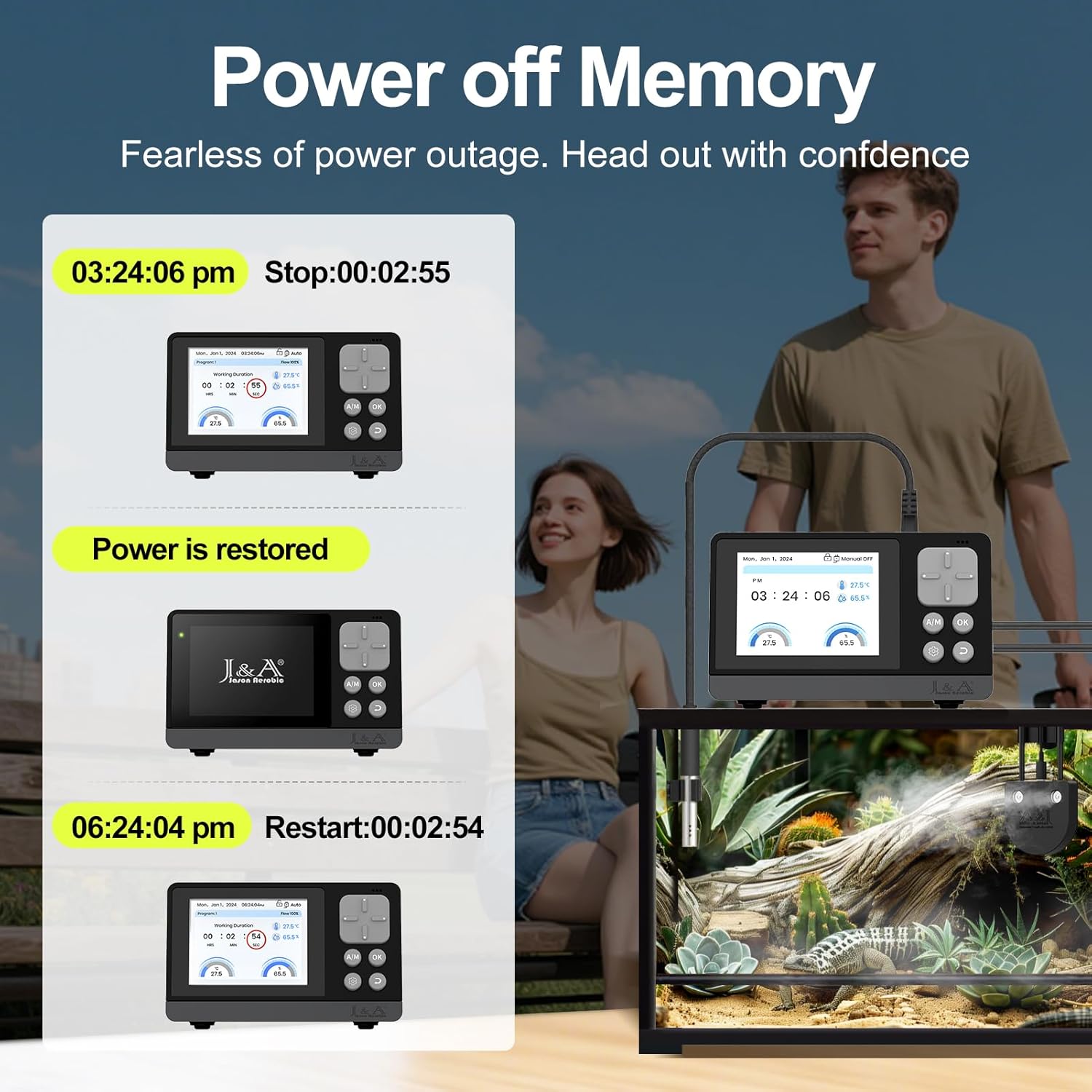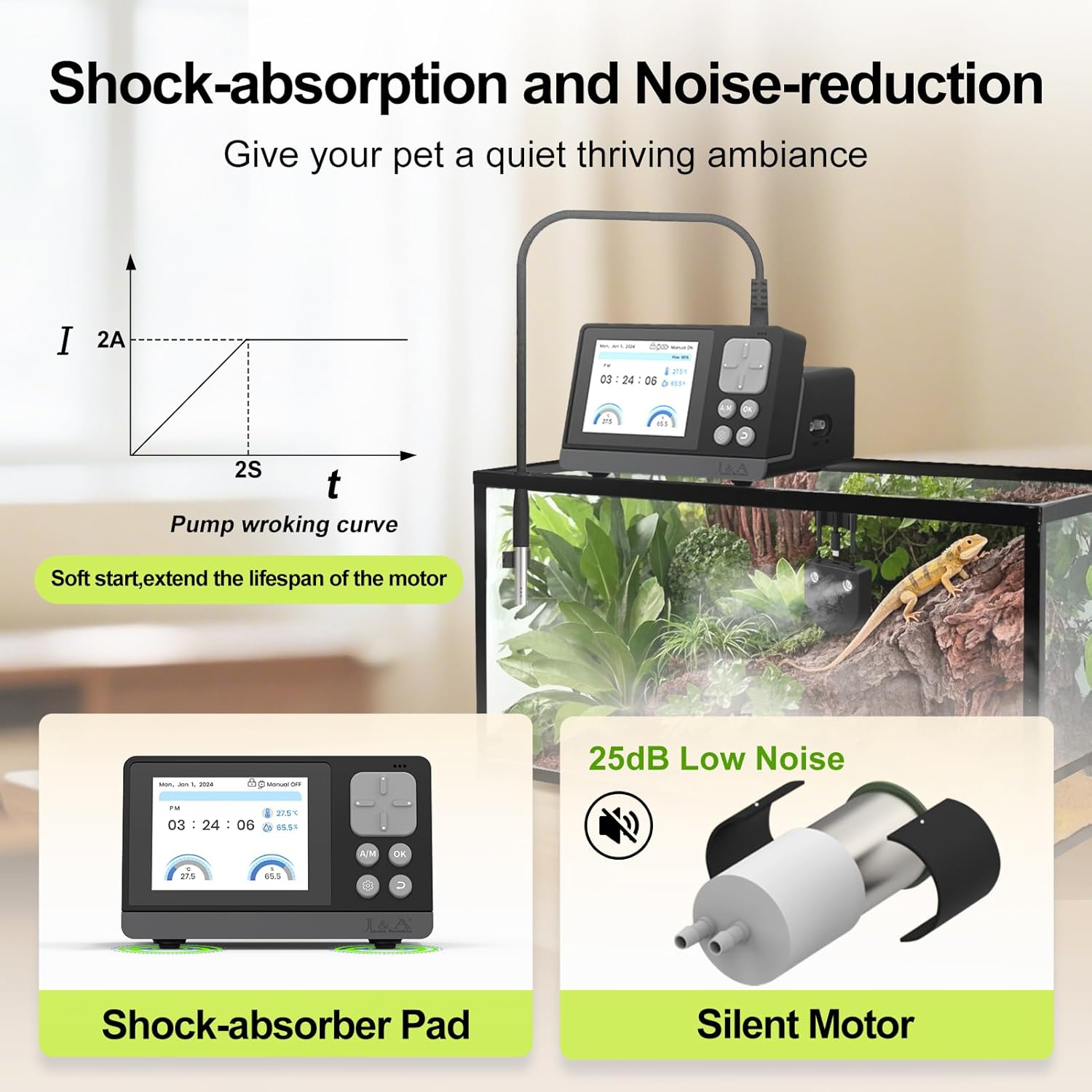 - Power-off memory function ensures the humidifier resumes operation immediately upon power restoration, this feature guarantees uninterrupted program control, maintaining optimal environmental conditions to support the health and well-being of your terrarium inhabitants