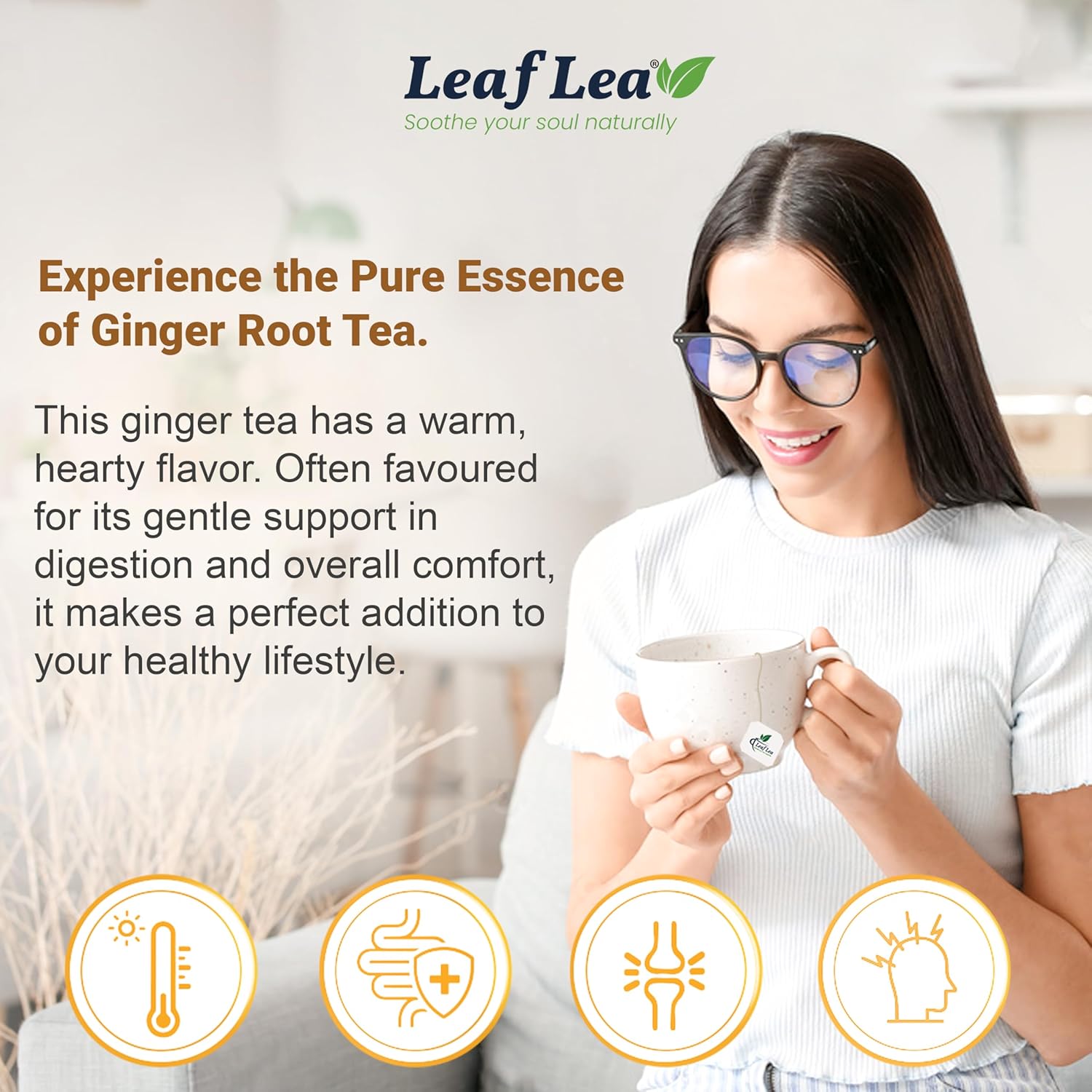 LeafLea 100% Pure Ginger Root Tea Bags – Spicy & Warming Herbal Tea, Supports Digestion & Immune Health, Individually Wrapped, Non-GMO, Caffeine Free, Sugar Free, No Gluten