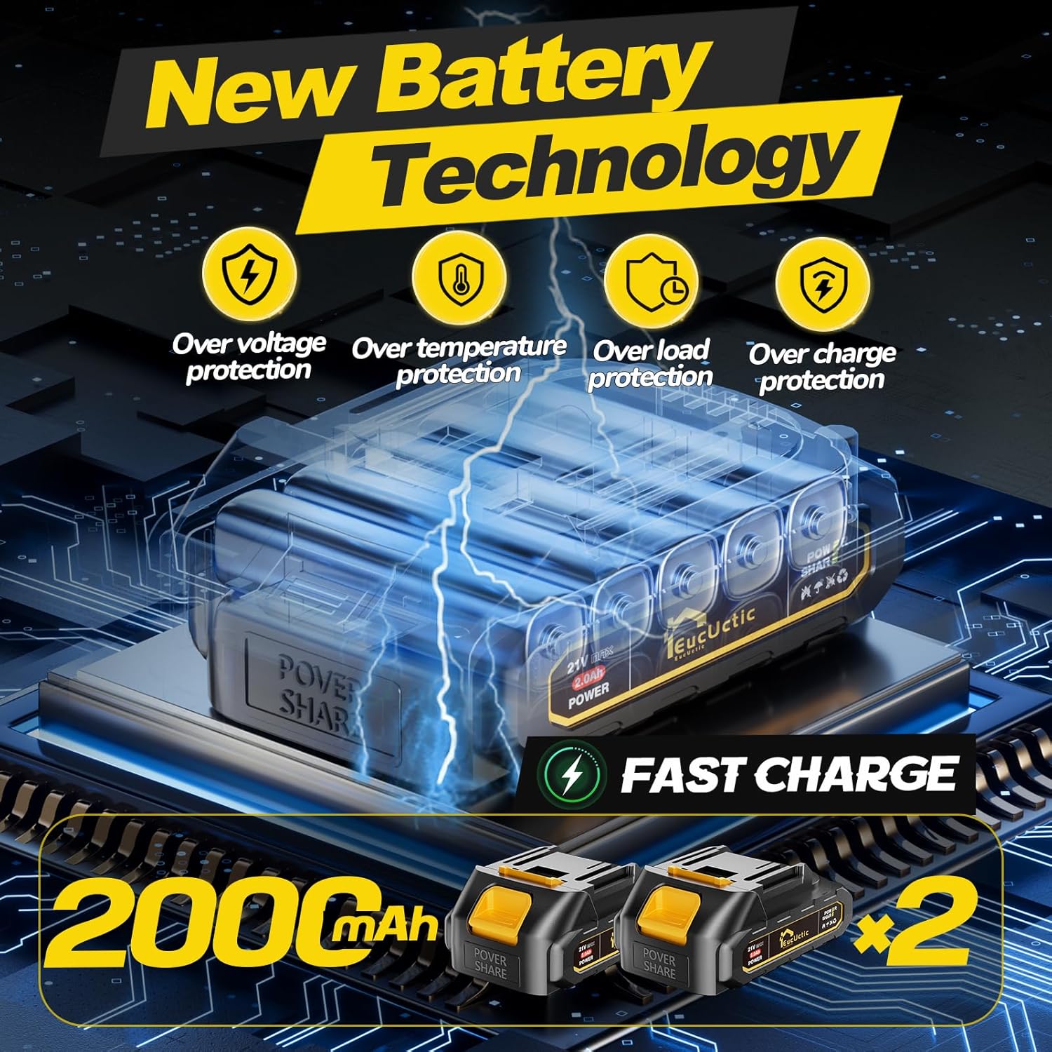 - 4000 Mah Battery & Fast Charging: Next-gen 21V 2000mAh lithium batteries deliver 45+ minutes runtime (2-pack BATTERY). The handheld chainsaw battery powered system supports quick swaps for uninterrupted yard work, emergency repairs, or off-grid adventures.