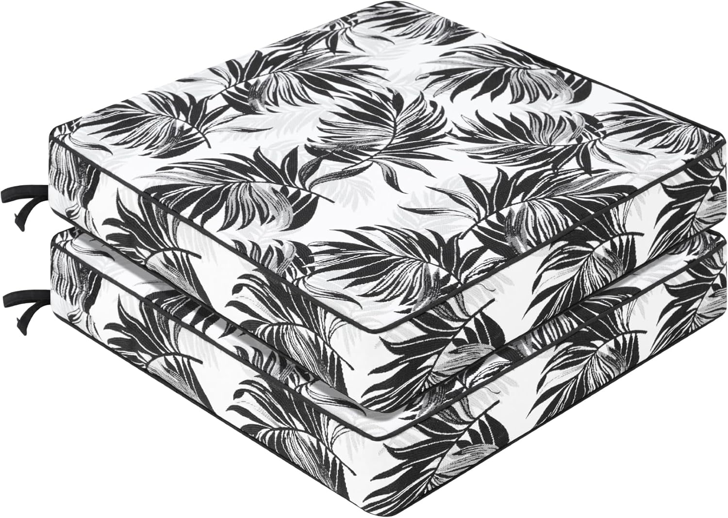 Favoyard Outdoor Chair Cushion 19 x 19 x 3 In Waterproof Pattern Fade Resistant Cushions for Patio Furniture with Removable Cover Attach Straps 28D Foam Insert Cushions Pads for Seat Sofa Couch 2 Pack