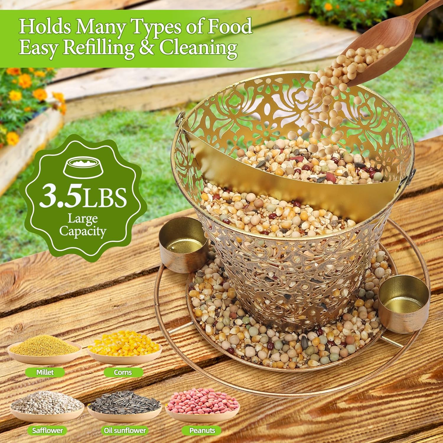 - Unique Design: This metal bird feeder is not just functional, it's a beautiful addition to your garden decoration. The hollow-out design makes it easy to monitor the seed level, and it's designed with care and comfort in mind, including drainage holes, ventilation holes, and drinking cups.