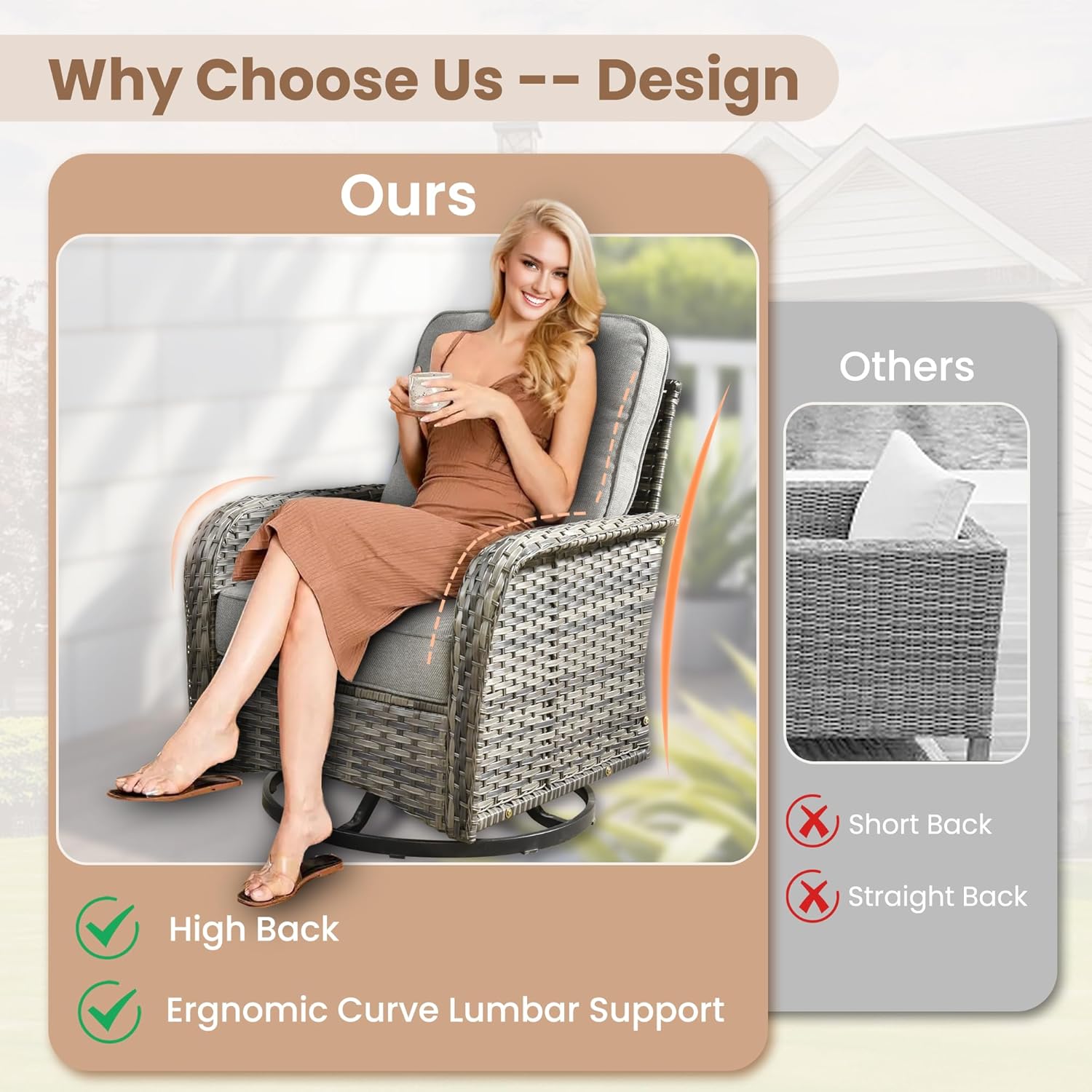HOOOWOOO Patio Furniture Set,5 Pieces Outdoor Conversation Set,All Weather Wicker Loveseat Sofa Set with High Back Swivel Rocking Chairs Tables,Dark Gray