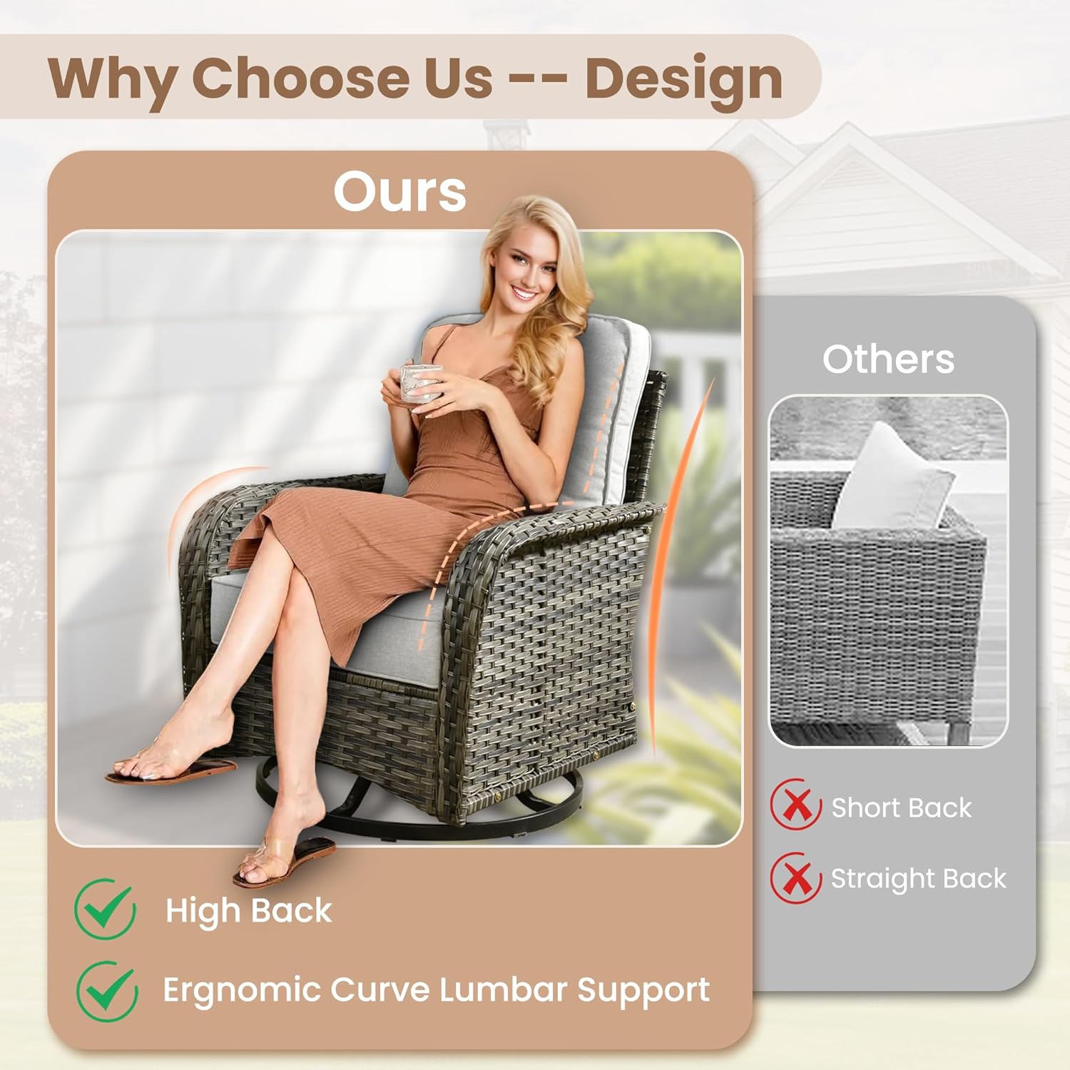 - Swivel Rockers: Designed for both 360° swivel and front to back rocking.Selected thicken and stable mechanism for smoother and quieter rotation as well as safer glider rocking