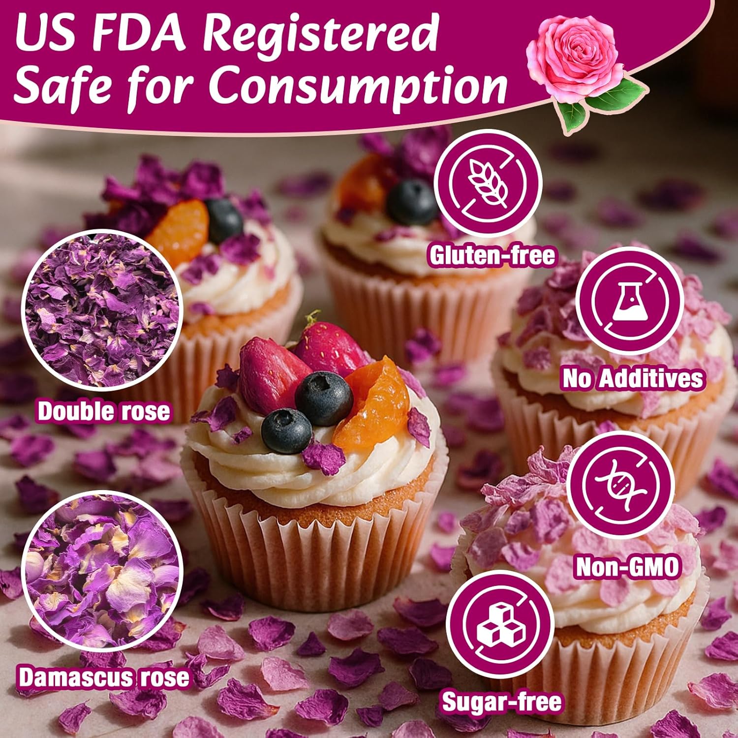 - 【100% Natural & FDA Certified】Made from pure rose petals, gently dried at low temperatures to retain color, aroma, and nutrition. Certified for safe consumption – gluten-free, sugar-free, and non-GMO