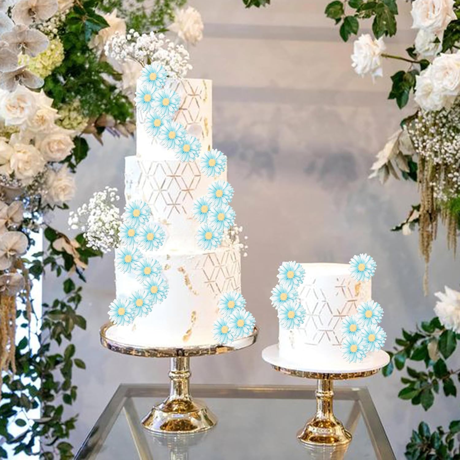 60 PCS Edible Daisy Cupcake Toppers Wafer Paper Daisy Cupcake Picks Edible Daisies Wildflower Birthday Party Decorations for Baby Shower Wedding Birthday Party Cake Food Decorations Supplies Blue