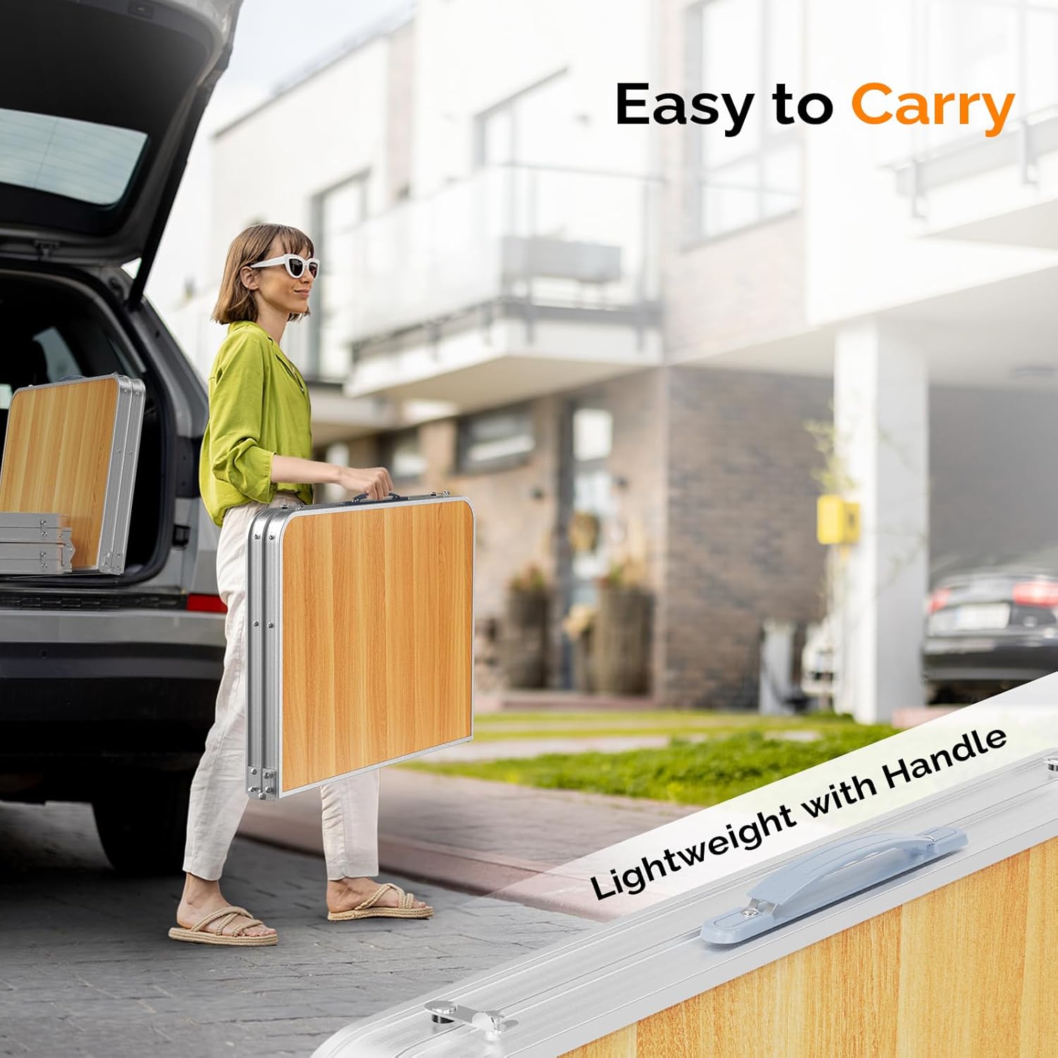 - LIGHTWEIGHT&FOLDABLE: MDF tabletop and aluminum feet make its weight just 8.1 lbs. The feet could be set off and tabletop could fold in half, foldable like suitcase(23.6”*17.7”). It is convenient to carry it to anywhere with its soft carry handle.