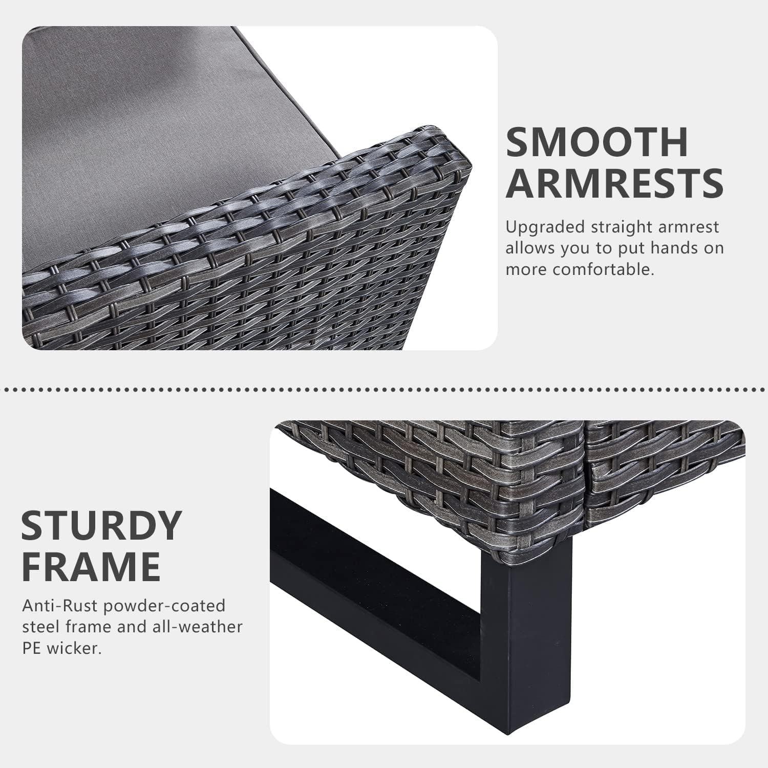 - 【Upgrated Elegant Design】All made with Anti-Rust powder-coated steel frame and All-weather Hand-Woven PE wicker to make this patio furniture set is resistant to UV and weather,The patio conversation sets is totally upgraded with straight armrest and the heightened ergonomically curved backrest.