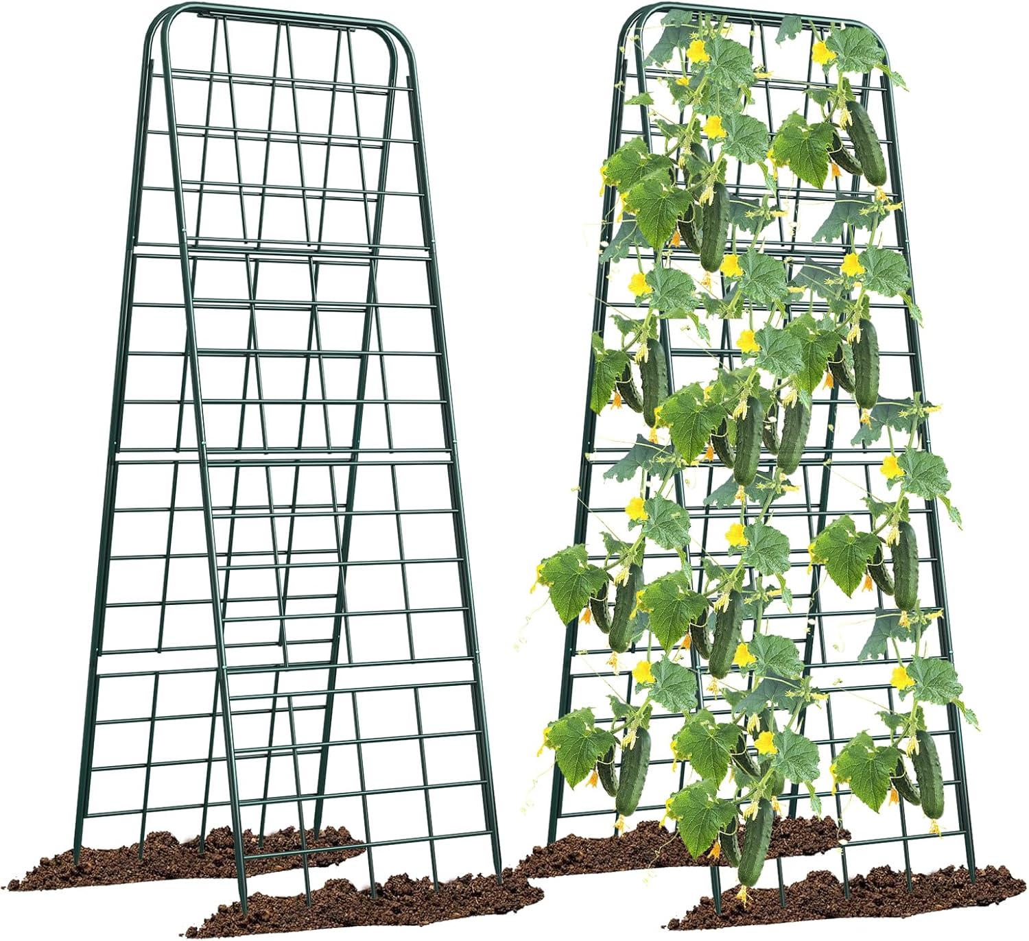 Heavy Duty 50"x17" Adjustable A-Frame Trellis for Climbing Plants – Rust-Proof Metal Garden Trellis with Dense Grid Design, Perfect for Raised Beds, Tomatoes, Cucumbers & Outdoor Vines (Green, 2 Pcs)