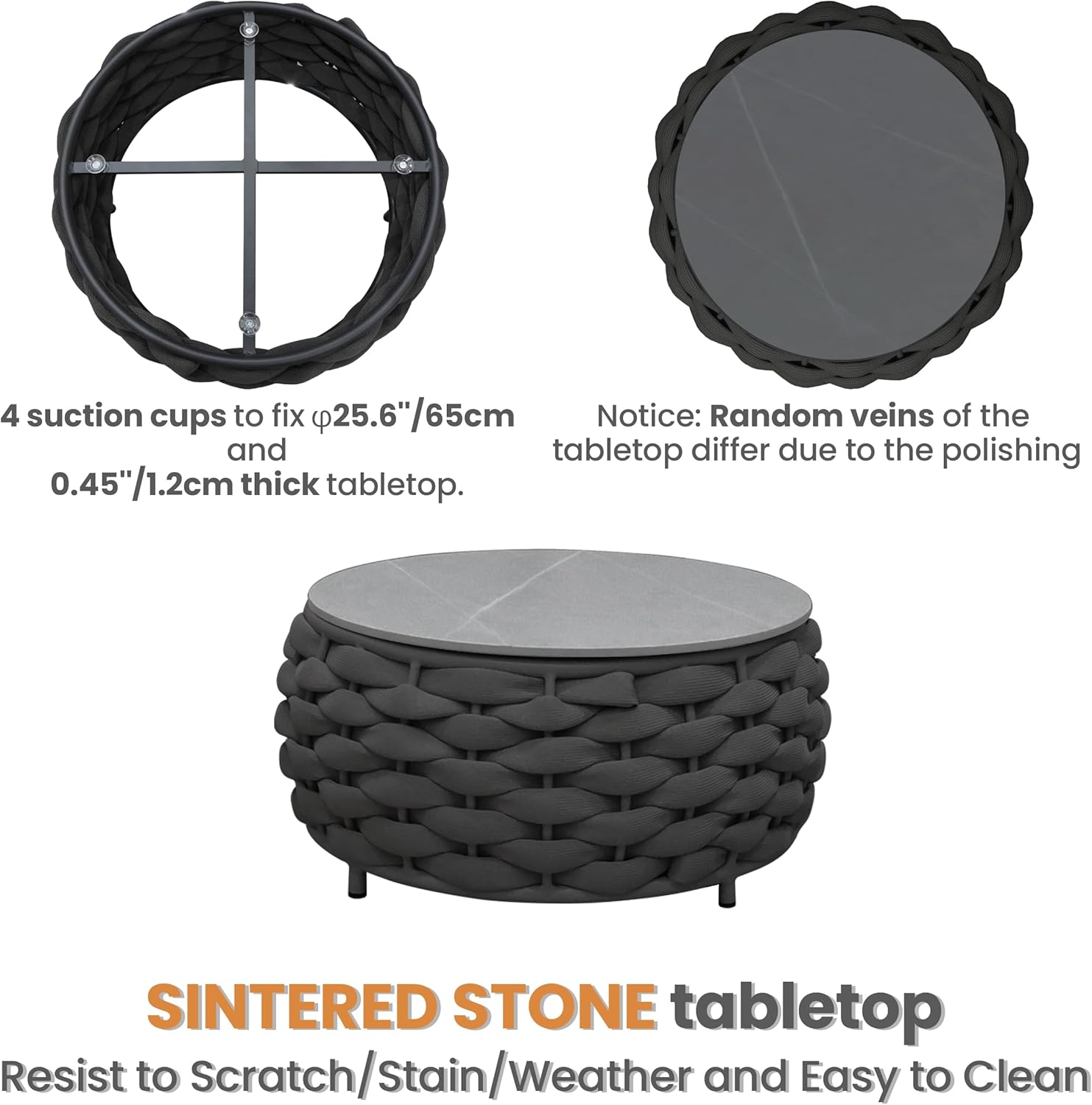 - Easy cleaning and scratch-resistant sintered stone tabletop is fixed by 4 suction cups. Cushions cover replaceable removal and machine washable. Adjustable nylon feet levelers for uneven floor also prevent scratching