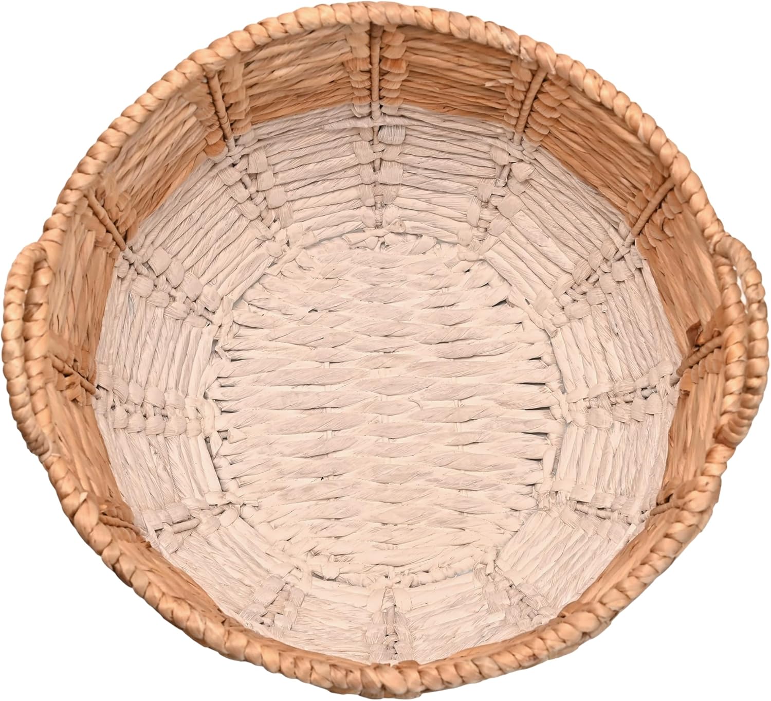 - With the natural and white coloring of woven fibers, this basket is the perfect neutral addition to any bohemian home; crafted by artisans, the color can be slightly different than shown