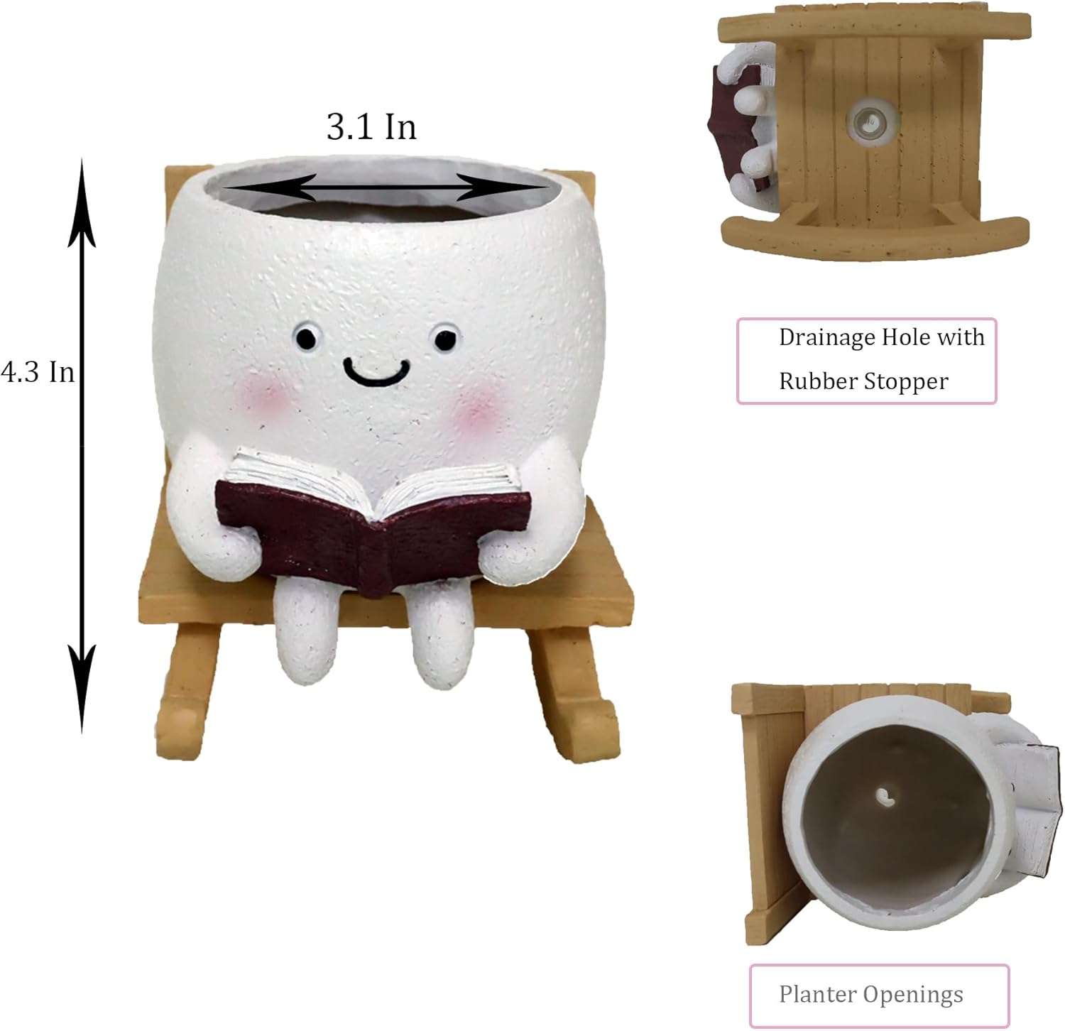• 🌼 Novelty Design Planter: The shape of the head planter is a lady sitting on the rocking chair reading the book. The face planter has a drainage hole in the bottom to prevent overwatering and promote healthy plant growth. Simply place your desired plant inside, add soil, water as needed, and watch your greenery flourish.