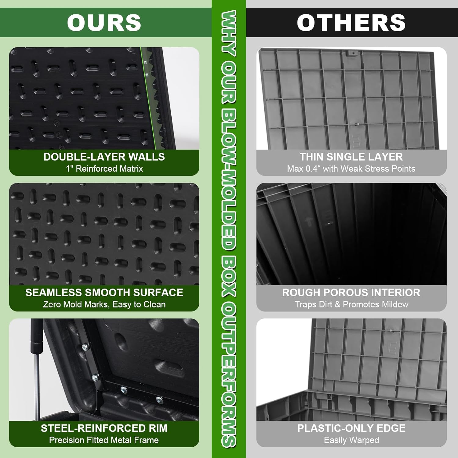 - Massive 230-Gallon Capacity: Designed as a storage box for outdoor furniture covers, this extra-large unit holds bulky items like patio cushions, grilling tools, and winter gear. Its spacious interior maximizes your backyard, garage, or balcony storage without clutter.