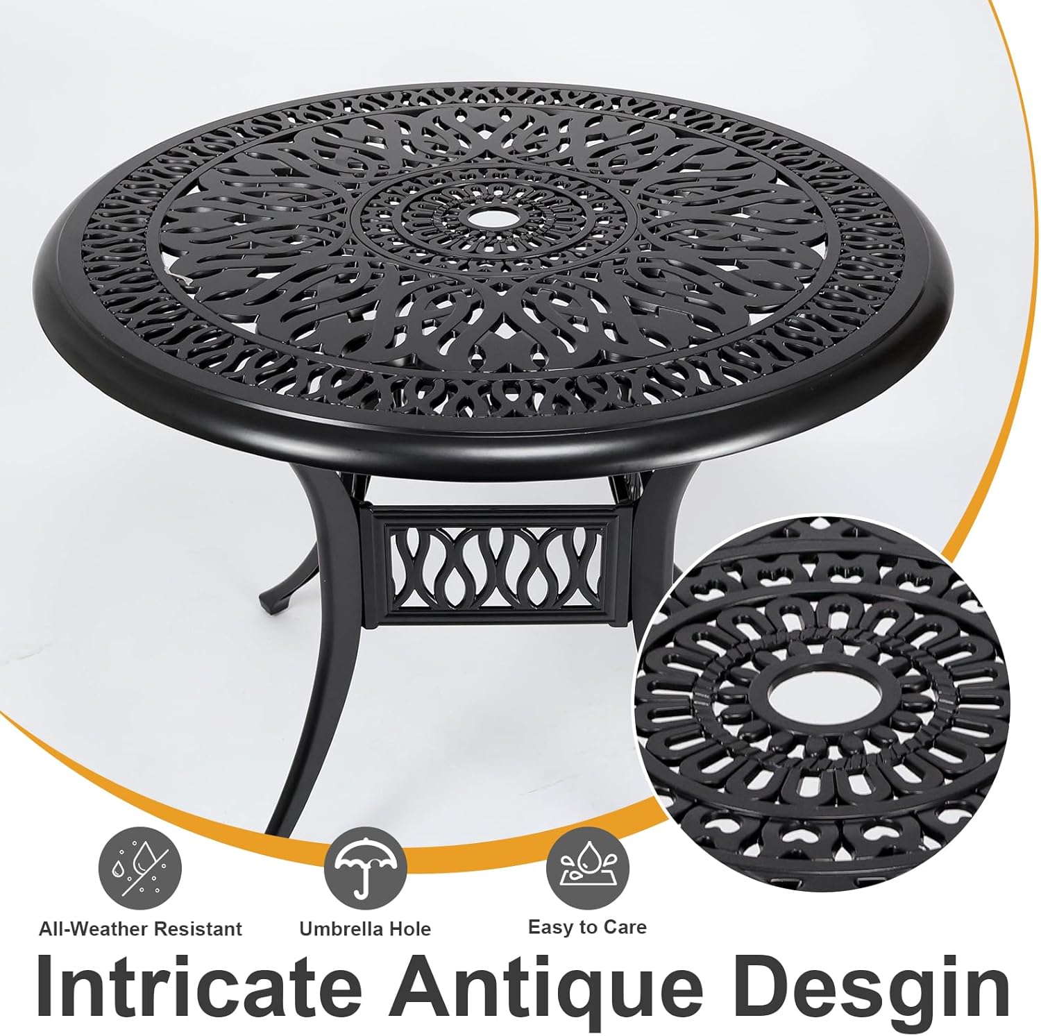 Cast Aluminum Dining Set 5 Piece Outdoor, Patio Conversation Furniture Set, Patio Table and Chairs Set of 4 for Garden Backyard, Black