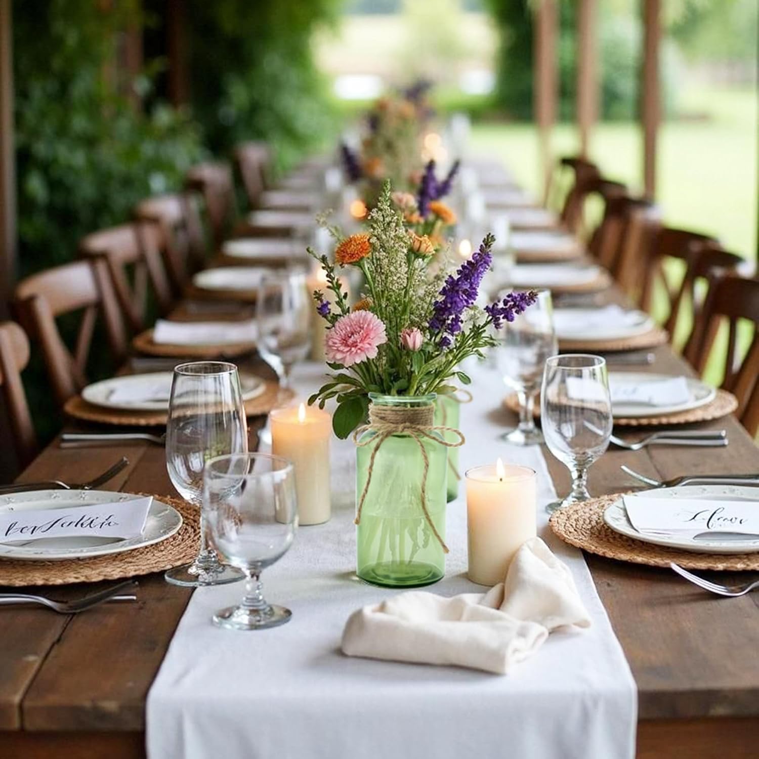 - 🏺 Commercial-Grade Bulk Vases:6-pack vintage glass centerpiece vases designed for weddings, banquets, and catering businesses. Clear mason jars offer reusable rustic charm for floral arrangements or candlelit tables