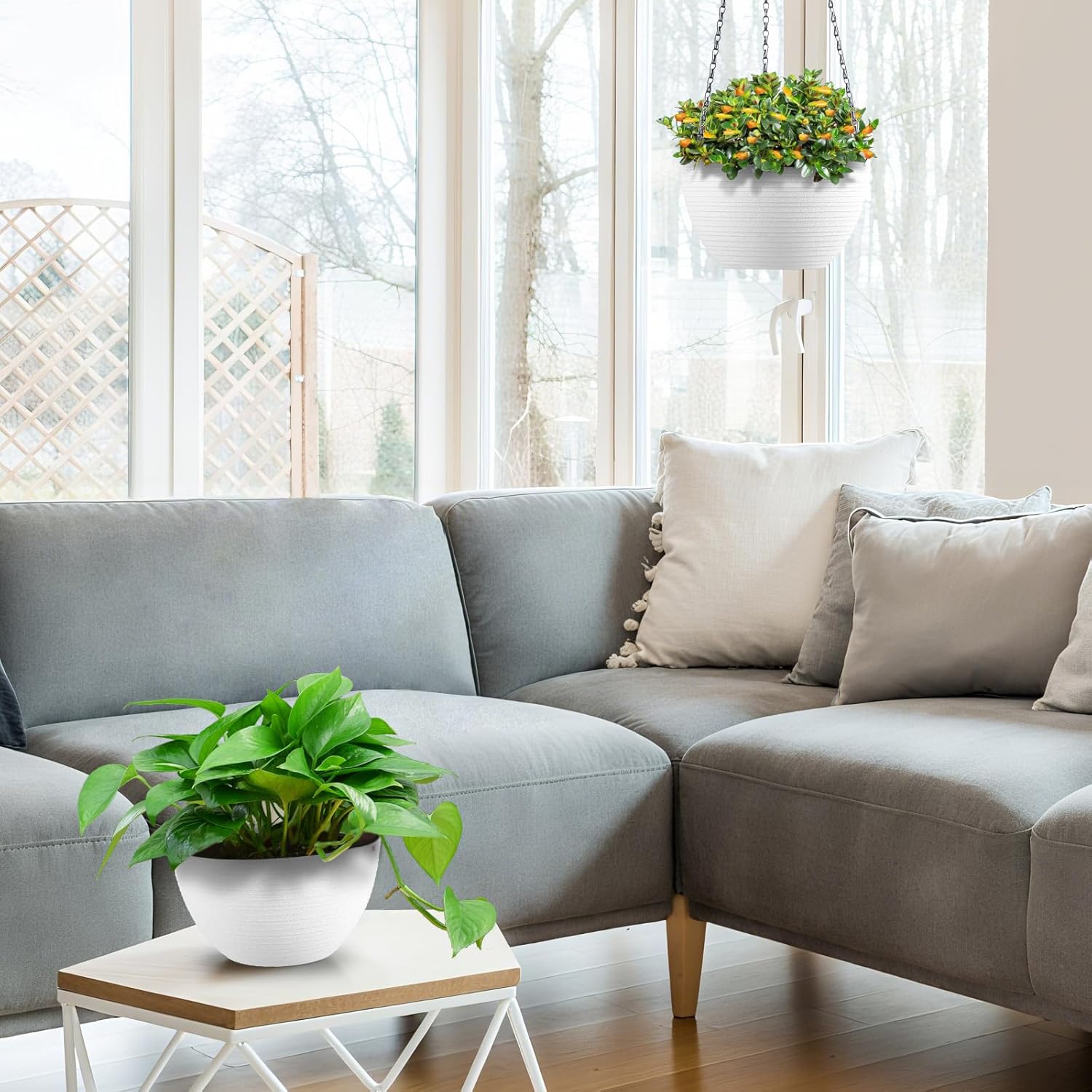 Hanging Planters for Indoor Outdoor Plants, Set of 2 Self Watering Hanging Pots with Drainage Hole & Plug and 20" Chain & Hooks