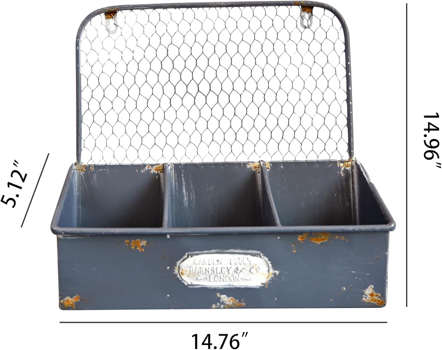 - 【CHARMING VINTAGE DESIGN】Showcases a distressed gray metal exterior with purposeful rust - like patches and a classic "Garden Tools" - inspired plaque. The chicken wire back panel adds a touch of rustic authenticity, making it a standout decorative piece for any garden, patio, or indoor space.