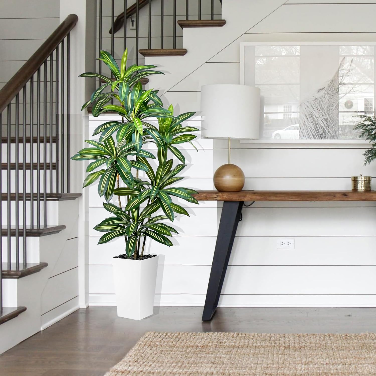 Artificial Dracaena Tree 6FT Tall Fake Plant with White Pot - Realistic Faux Dragon Tree with Tall Planter - Indoor Floor Plant for Home, Office,Mall, Living Room, Bedroom Decor (White - Planter, 6ft)