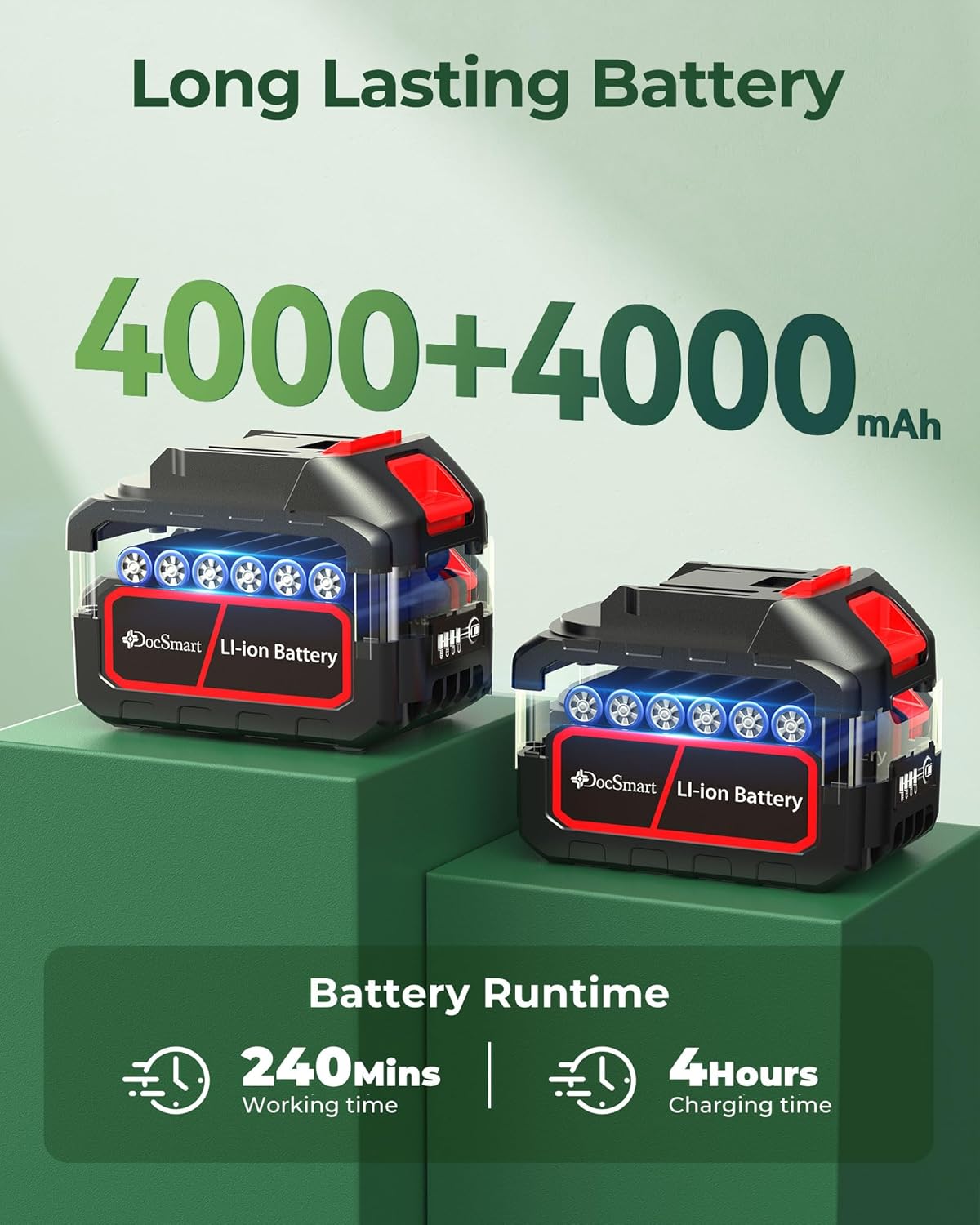 - Lightweight: DocSmart hedge trimmer comes blade assembled with oil pre-coated to reduce wear and tear, simply plug in the fully charged battery, screw the baffle and start using it. Ergonomic and non-slip handheld design ensures a comfortable grip and easy control. It weighs only 4.4 lbs,not easy to get tired after long-term use. User-friendly for family and temporary work, even the elderly can easily control it