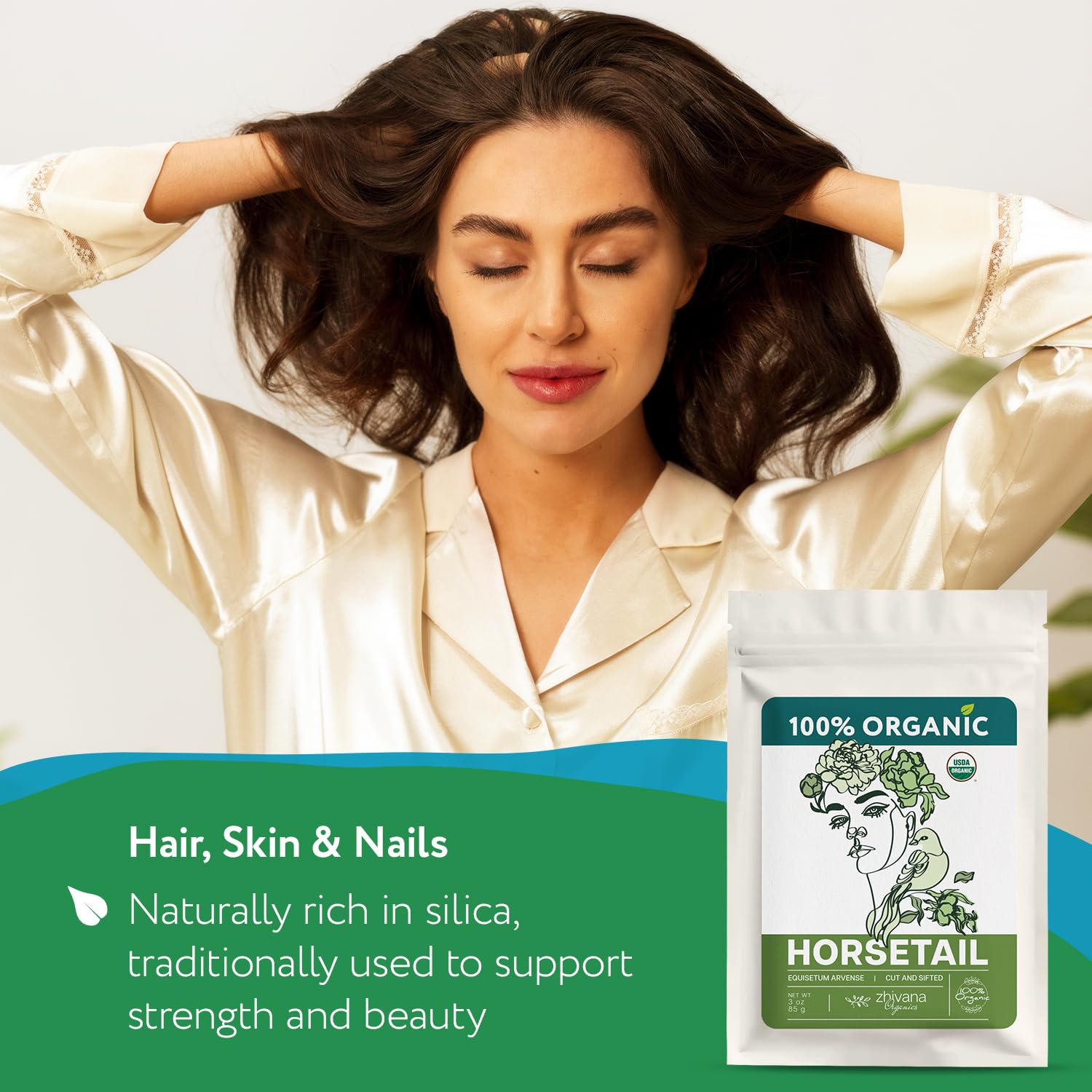 - šæ Traditionally Used in Herbal Practices ā Horsetail has been historically used in wellness traditions for its naturally occurring silica and is often included in herbal infusions associated with supporting beauty and vitality.