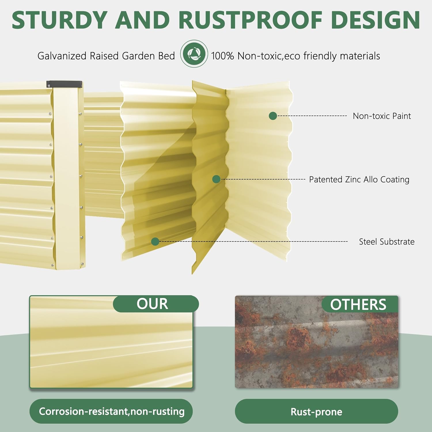 FOOWIN 4pcs 6x3x2ft Galvanized Raised Garden Bed, Planter Raised Garden Boxes Outdoor, Large Metal Raised Beds for Gardening, Garden Bed for Vegetables, Flowers, Herb,269 Gallon Capacity, Cream Yellow