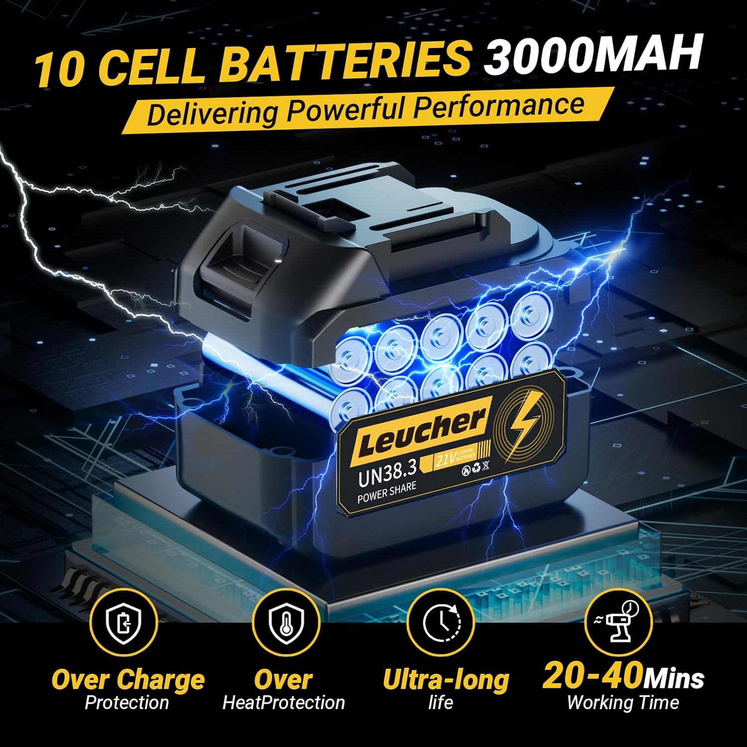 - 【21V*2 Pcs Batteries 】The cordless leaf blower with battery and charger comes with 2*21V batteries, which can work continuously for 40 minutes (20 minutes per battery), and the hand blower has built-in high temperature protection to ensure safe operation. If the machine stops, wait 20 seconds to reinstall the battery. Please fully charge the battery when not in use for a long time to extend blower cordless life.