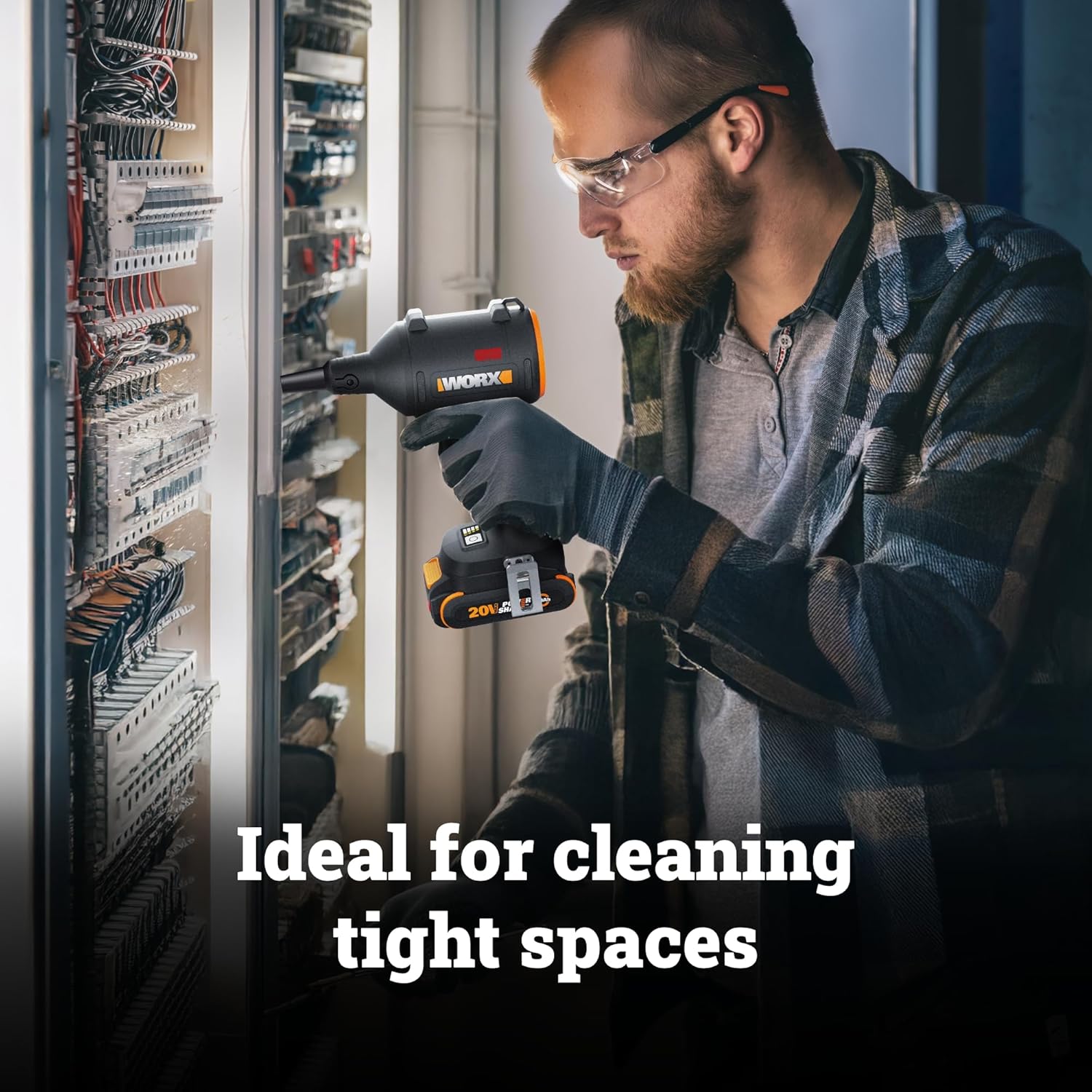 WORX Cordless Blower/Inflator, 20V 39 CFM 470 MPH Brushless High Speed Portable Dust Cleaner for Workshop, Lawn, Yard, Home, Lightweight Handheld Blower, Battery and Charger Included,WX099L PowerShare