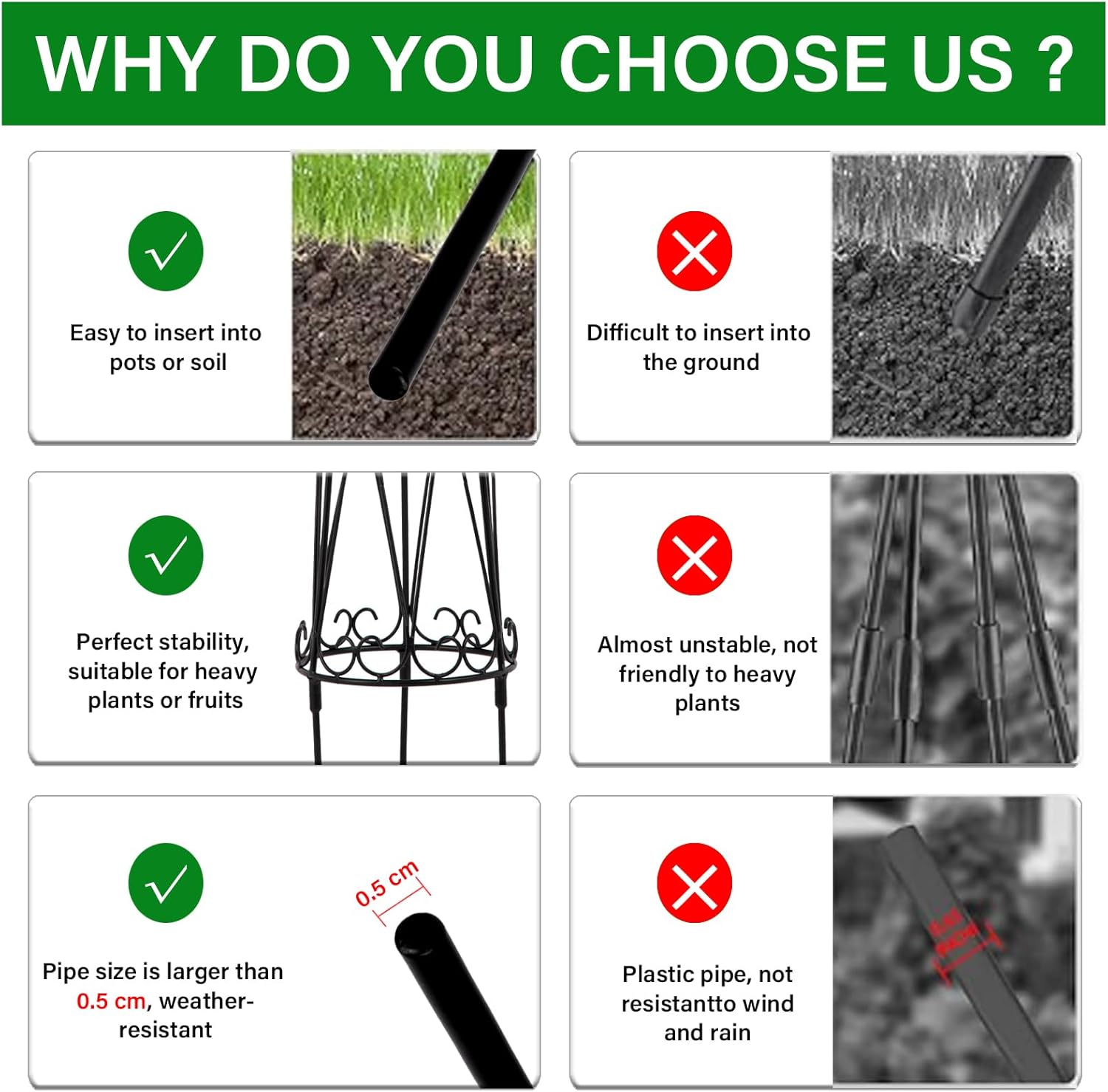 - Committed Customer Support: Your satisfaction is our top priority. We stand by the quality of our product and offer dedicated support for any questions or concerns you may have about the obelisk trellis, ensuring you fully enjoy your plant arrangements.