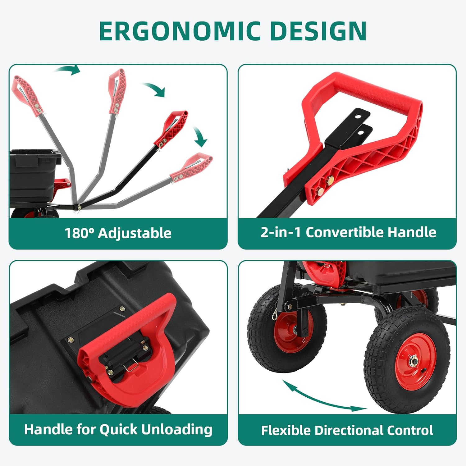 - Versatile Towing & Hauling: Innovative 2 in 1 convertible handle with built-in hitch transforms this garden cart instantly – use it as a hand-pulled garden cart or effortlessly connect it to ATV/UTV, tractors, or lawnmowers for powerful long-distance hauling across farms and large properties.