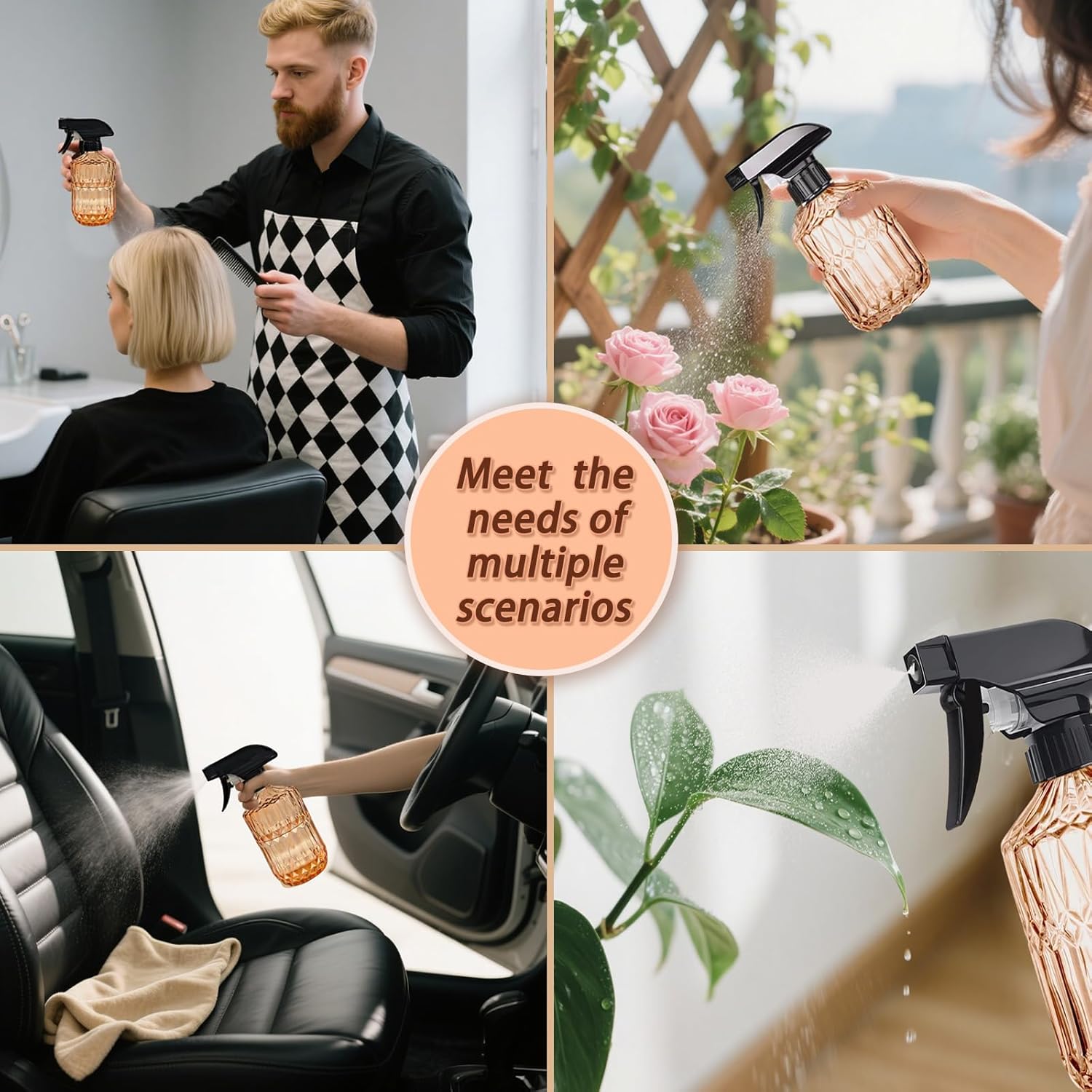 Empty Glass Spray Bottles, 15oz Refillable Water Bottle Spray, Plastic Top Pump, Reusable Adjustable Mist Sprayer Squirt, Handheld Bottles Containers Refillable for Hair, Cleaning, Gardening, Plants