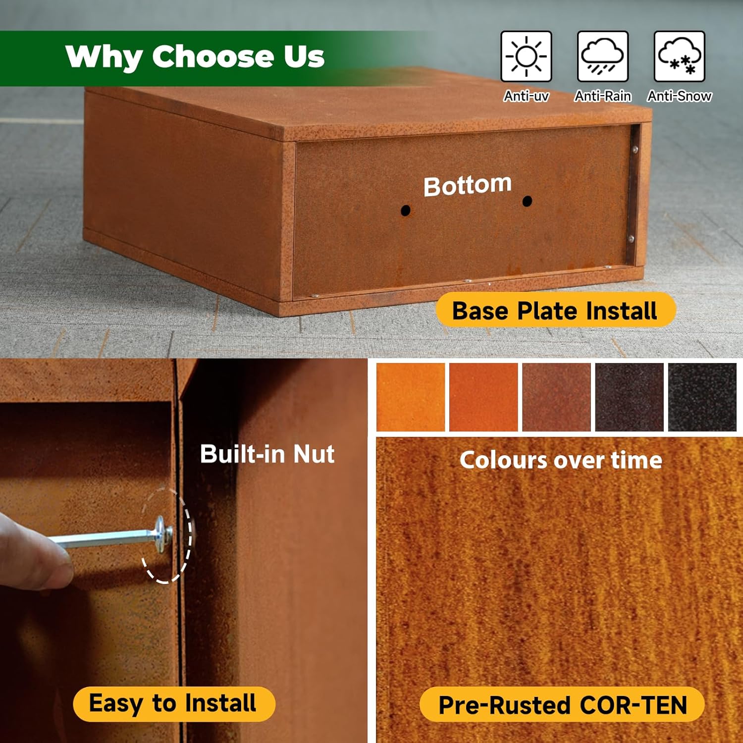 Galvanized Steel Metallic Heavy Planter for Outdoor Plants Metal Outdoor Planter Spliced Flower Box with Partitions for Outside,Indoor,Garden (Corten, 30 * 12 * 24)