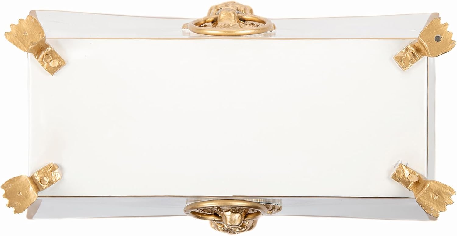 Jaye's Studio Paws and Claws Regency Rectangular Metal Cachepot, White Planter for Countertop, Fluted Planter with Feet, Modern Plant Pot, Centerpiece for Kitchen or Living Room, 12 Inch Vase
