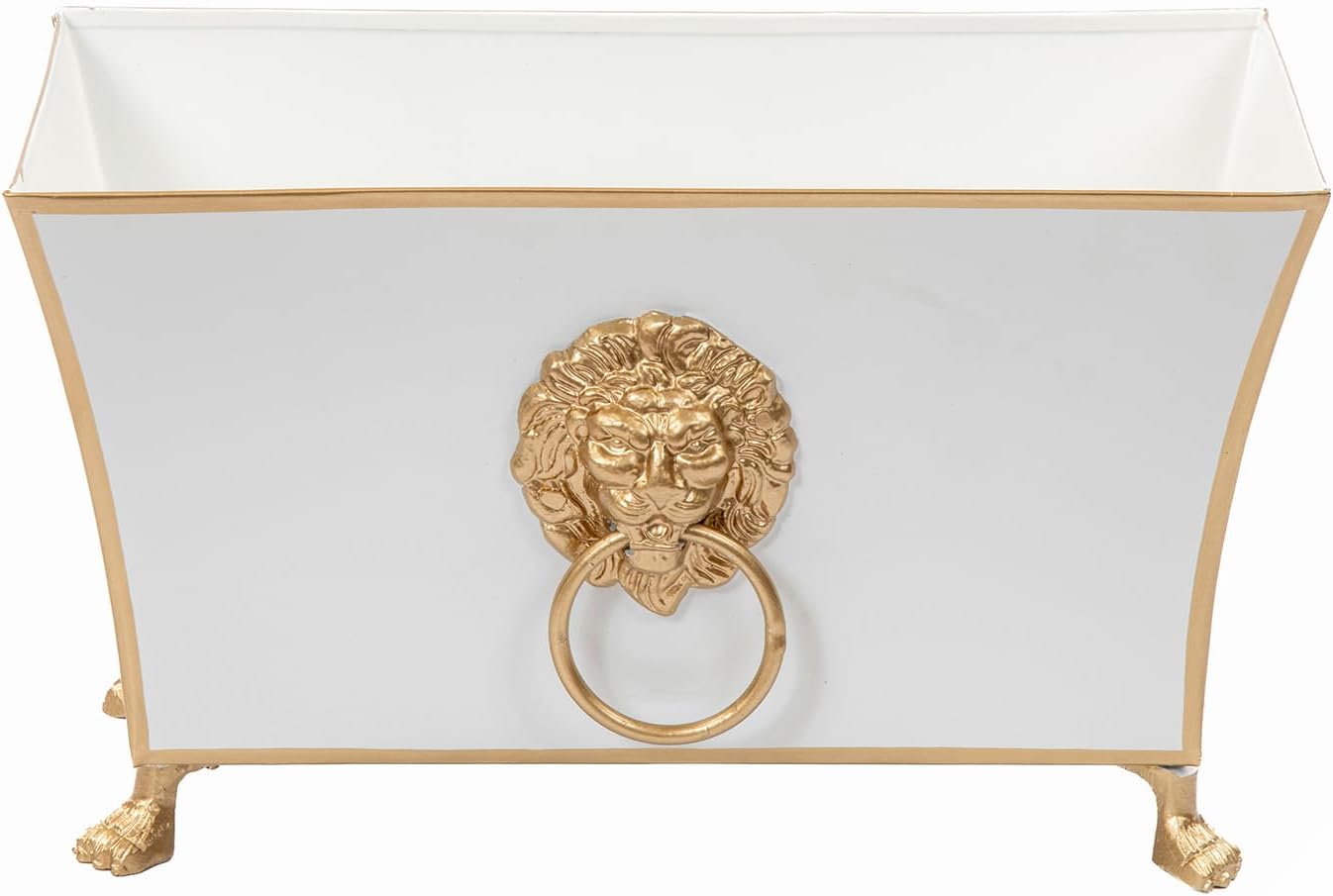 - Gracie Collection Signature Design | Featuring fluted edges and graceful feet, this cachepot from the Gracie collection offers unmatched sophistication in decorative boxes. Whether used on a console, windowsill, or dining table, this gold trim metal planter delivers style with purpose.