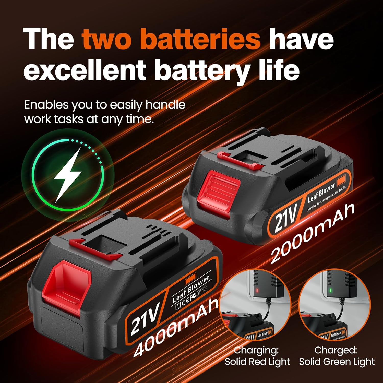 - Powerful & Convenient: Equipped with both 21V 2.0Ah and 21V 4.0Ah batteries and a fast charger, this foldable blower offers up to 40 minutes of runtime with just a 2-hour recharge. Ideal for quick cleanups in yards, gardens, and driveways.