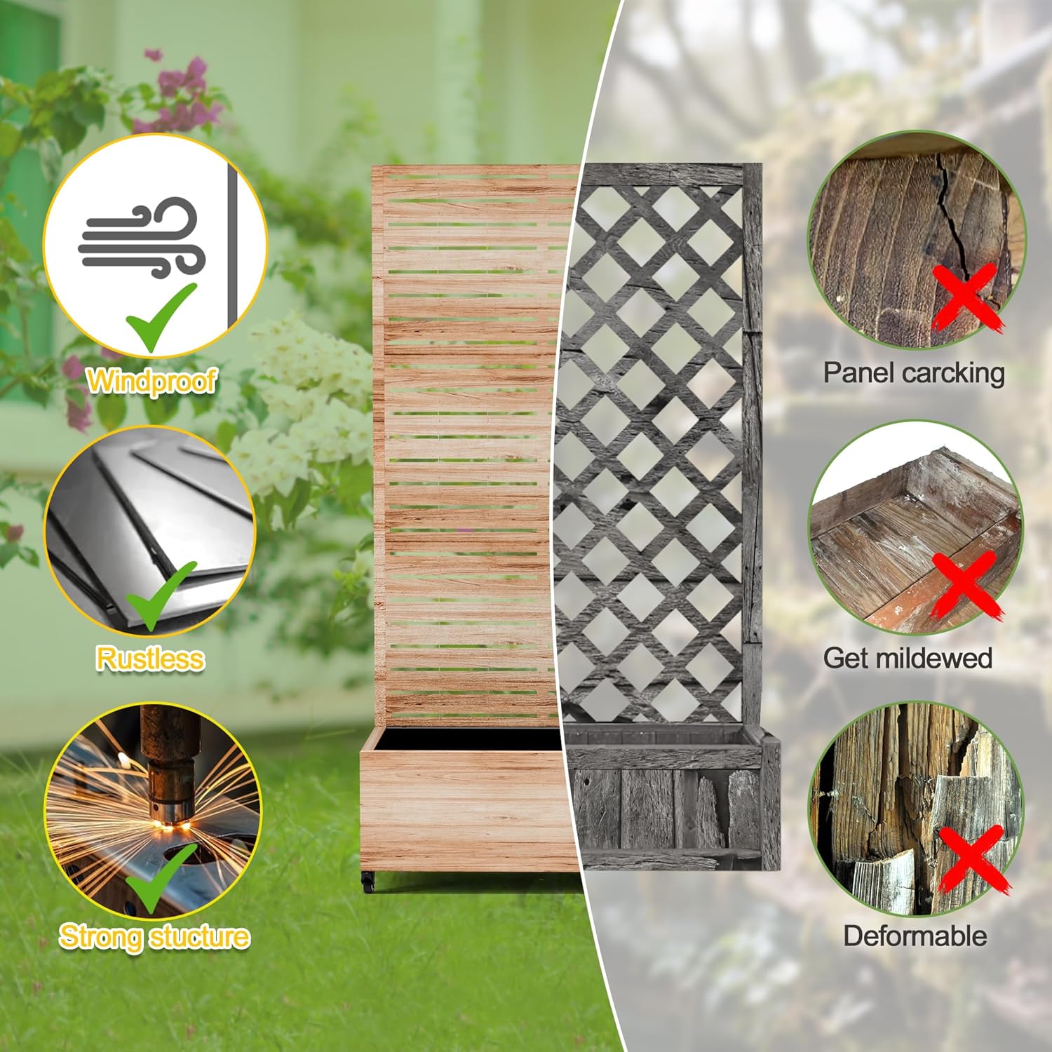 FENCY Metal Raised Garden Bed with Wheels and Trellis,73"x35"x16" Planter Box for Climbing Plants, Vegetables & Vines, Features Privacy Screen and Drainage Holes (Acacia Wood Finish)