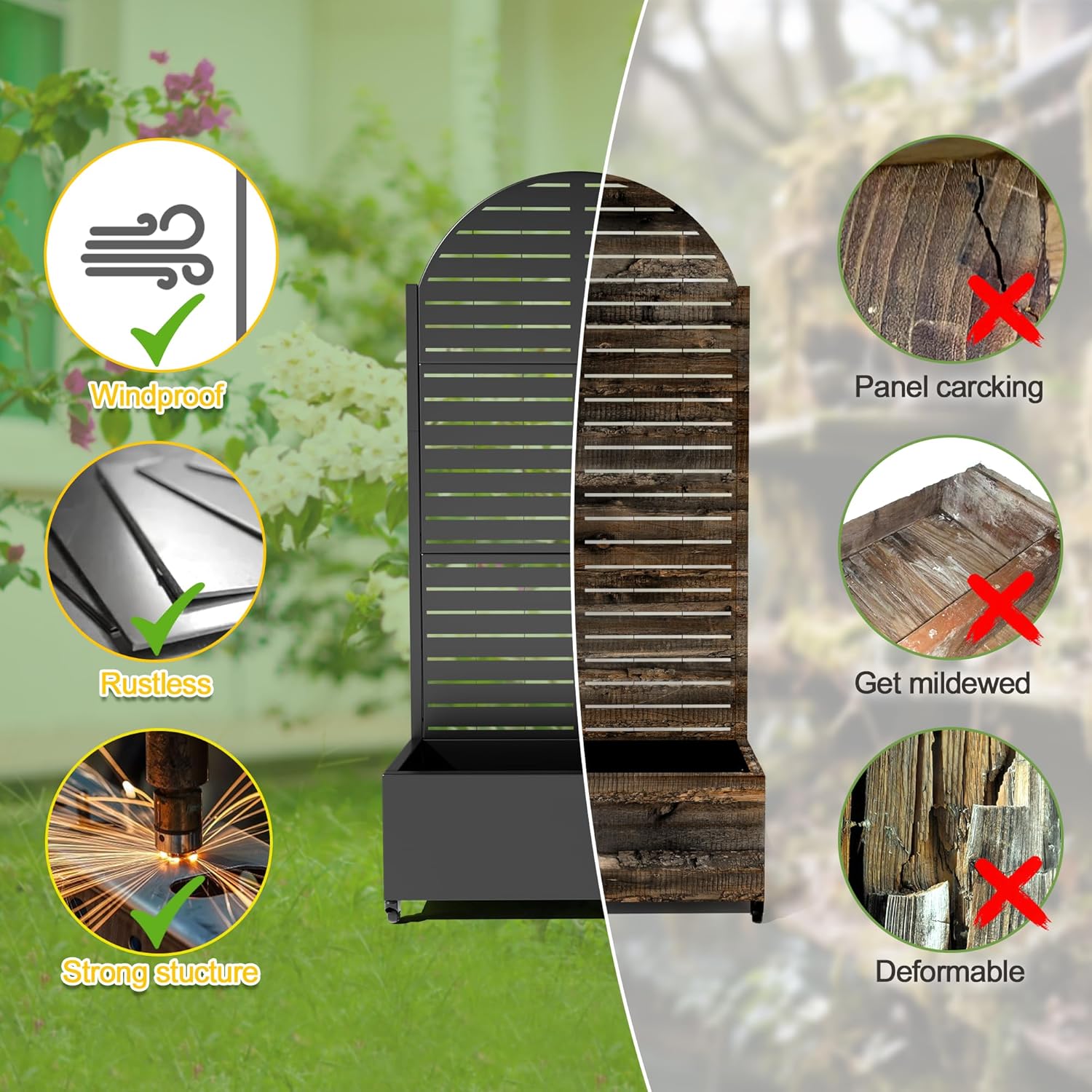 • 【Space-Saving Design】The combination of the planter box and trellis saves space while offering an attractive garden bed. This space-efficient solution is ideal for gardening enthusiasts facing space constraints, allowing them to cultivate beautiful gardens even in limited areas.