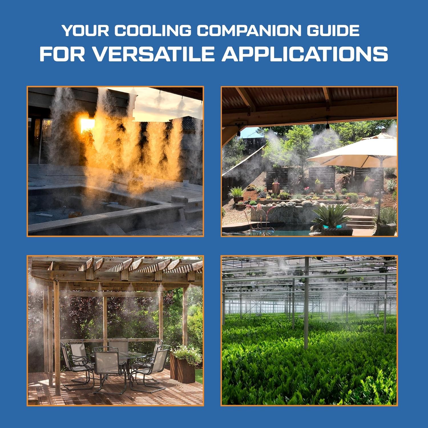 - Versatile Colling and Irrigation: You can use our outdoor misters for patio cooling for backyard patio control, keeps guests cool at birthday parties/family gatherings, and increase the comfort while reading, napping, or lounging. It can also be used as a misting system for maintaining humidity and preventing drying out in patio-adjacent garden beds.