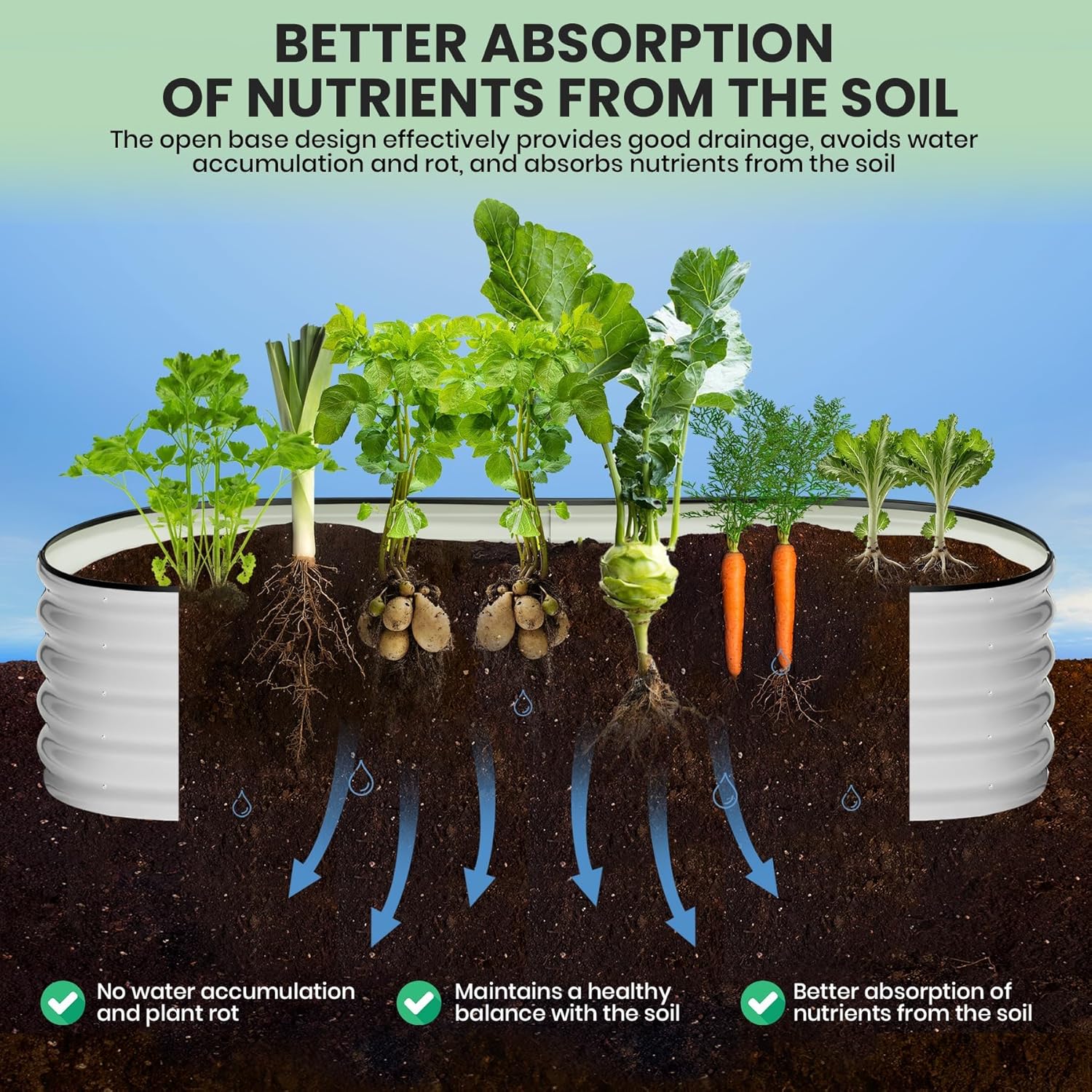 Galvanized Raised Garden Bed, 8x2x1.5Ft Metal Planter Box Outdoor, Oval Open-Ended Base Planter Raised Boxes for Vegetables Flower Herb,Beige