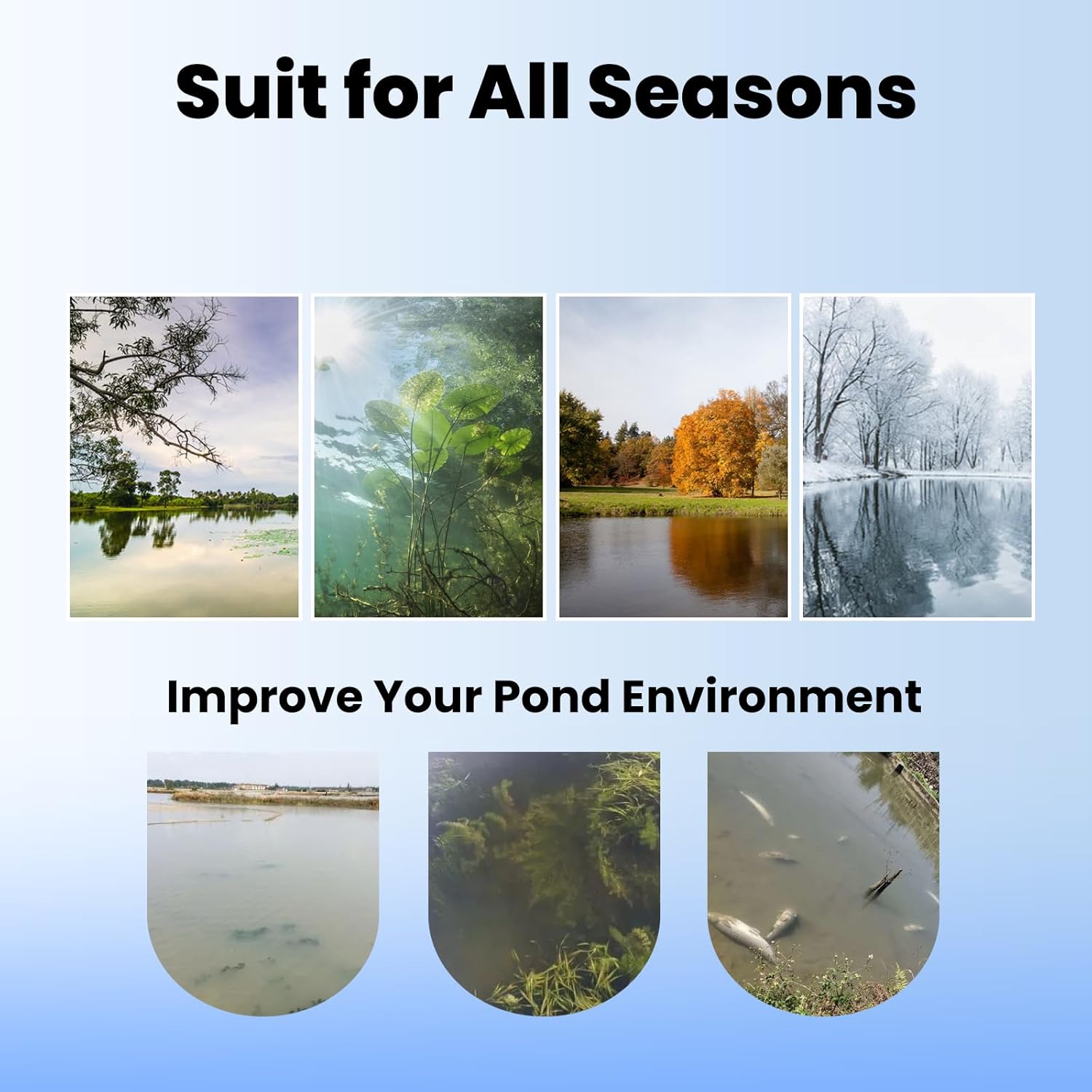 - 3/4 HP Air Compressor — Highly efficient and quiet 3/4 HP oil-free Rocking Piston Air Pump, offers 100ft hose pipe in two rolls, enables the air compressor operates up to 50 ft depth in outdoor ponds or lakes up to 3 acres. The motor of the pond air pump draws 5 AMP and pumps 5.2 CFM of air, with 60DB low noise level and working tempreture from 0-100℉