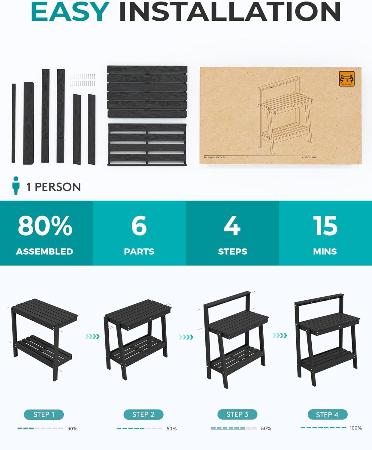 - Quick & Tool-Free Assembly: Everything you need for setup comes in the box. Just follow the straightforward instructions, and you can have your new garden work bench fully assembled and ready to use in under 20 minutesāno extra tools required.