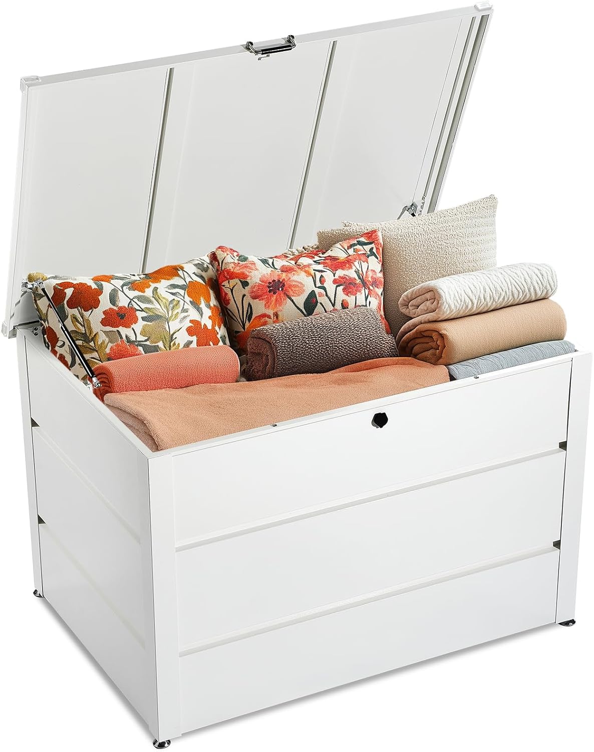 Quictent Metal Deck Box 150 Gallon Outdoor with Hydraulic Lid, Easy Assemble Waterproof Weather-Resistant Storage Bin, 660LBS Capacity for Patio/Garden/Poolside, White